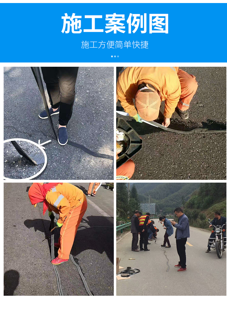 1、施工简便—一贴即牢。在路表面使用面层贴缝带只需清扫后即可铺设,省去了传统的灌缝料的切缝及加热设备。