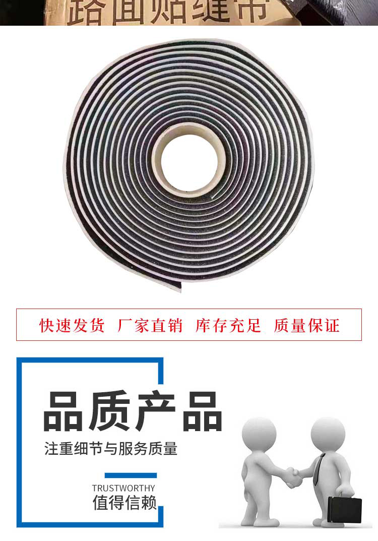 沥青路面裂缝贴缝带能够很好的贴近路面,使路面在修补过后仍能保持平整,道路既美观,又安全;其次,沥青路面裂缝贴缝带夏天不因高温流淌而污染路面,冬天不因低温开裂而使雪水下渗;,沥青路面裂缝贴缝带特有的超强柔韧性和抗寒性能够帮助开裂路面抵御严寒,即使是在零下三十度也能使您平安出行。