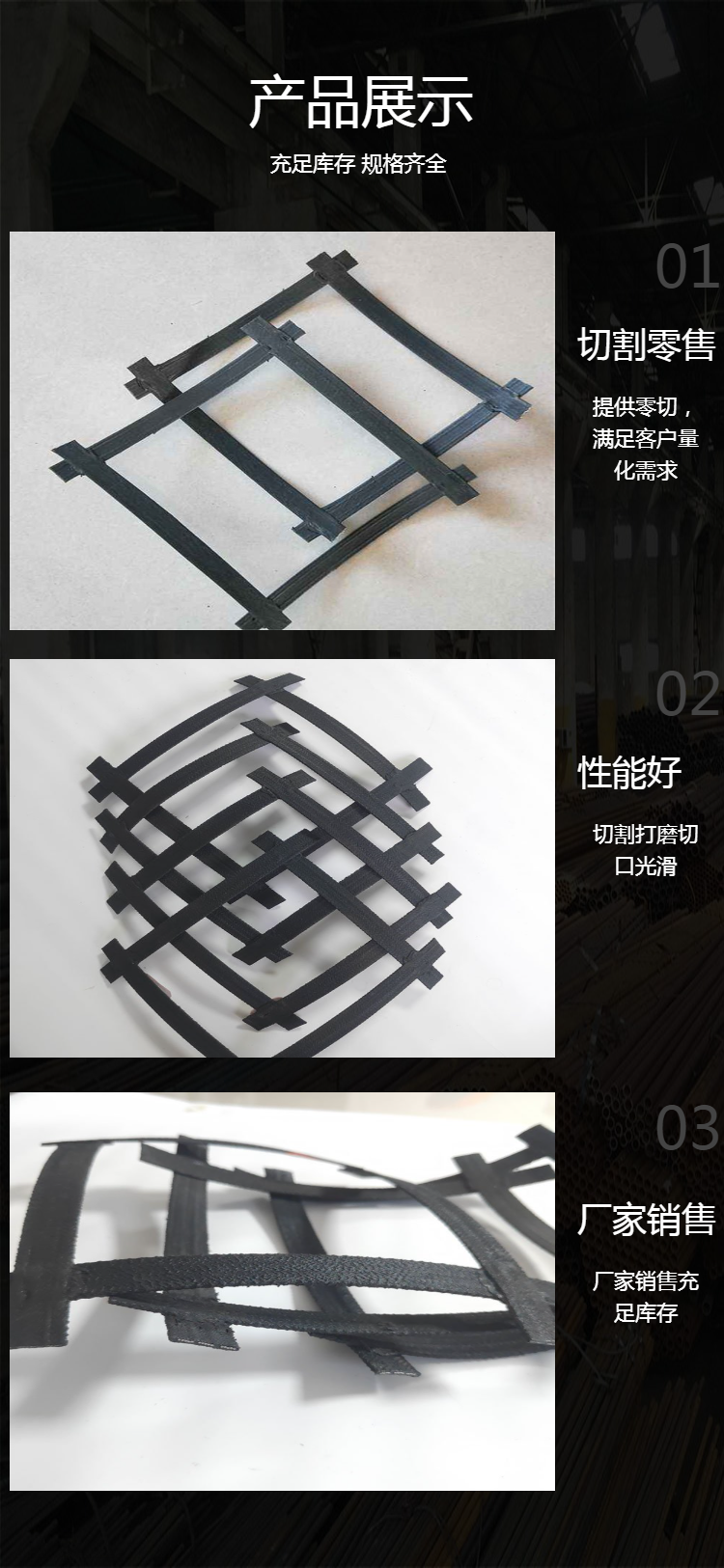 它具有双向强度高,刚性大的特点。是替代复合熔接土工格栅、编织生产的土工格栅的理想材料。