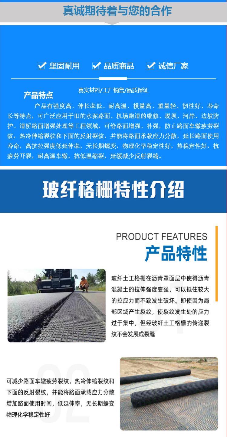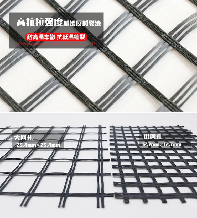 玻璃纤维土工格栅在沥青罩面层中的应用,使得沥青混凝土的拉伸强度大大提高,可以抵抗住较大的拉应力而不致发生破坏。另外,即使因为局部区域产生裂纹,使裂纹发生处的应力过于集中,但经玻纤土工格栅的传递而逐渐消失,裂纹不再会发展成裂缝。在选用玻纤土工格栅时,除其性能指标应符合上表规定之外,还应特别注意保证其幅宽不小于1.5m,以满足其作为控制反射裂缝夹层时有足够的横截面积来充分消散裂缝能量;同时,其网眼尺寸宜为其上沥青面层材料粒径的0.5~1.0倍,这样有助于达到剪切胶粘性,促进集料嵌锁与限制。 玻纤土工格栅主要用途: