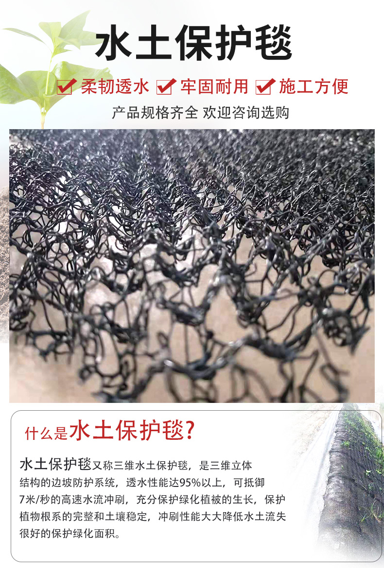 2.高持土率:实验表明,在草皮形成之前,水土保持毯的持土率高达98%。