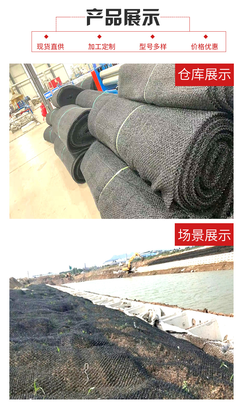 4.水土保持毯黑色产品的性质:它可以保持阳光直射的温度,因此即使在施工季节温度较低,也可以确保种子的顺利发芽。
