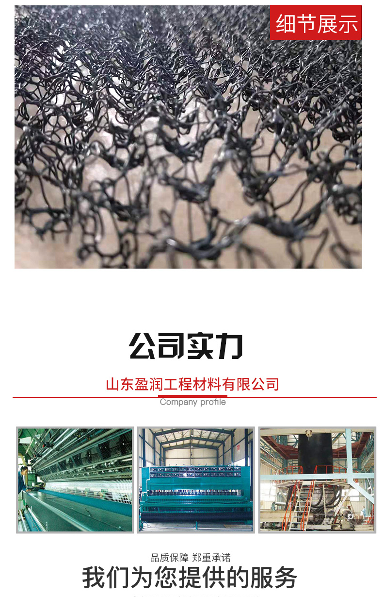 1.三维开孔结构,孔隙率达95%,可确保土壤的稳定性和完整性,并同时为种子发芽创造合适的微环境。这种结构可以为植物根提供增强作用。网垫的凹凸形状可以促进水流形成小涡流,达到消水效果,为边坡提供整体稳定的保护环境。
