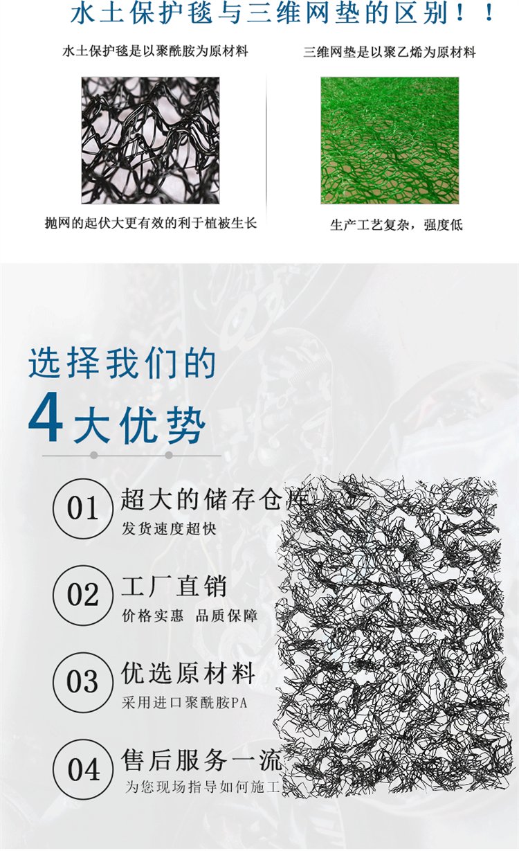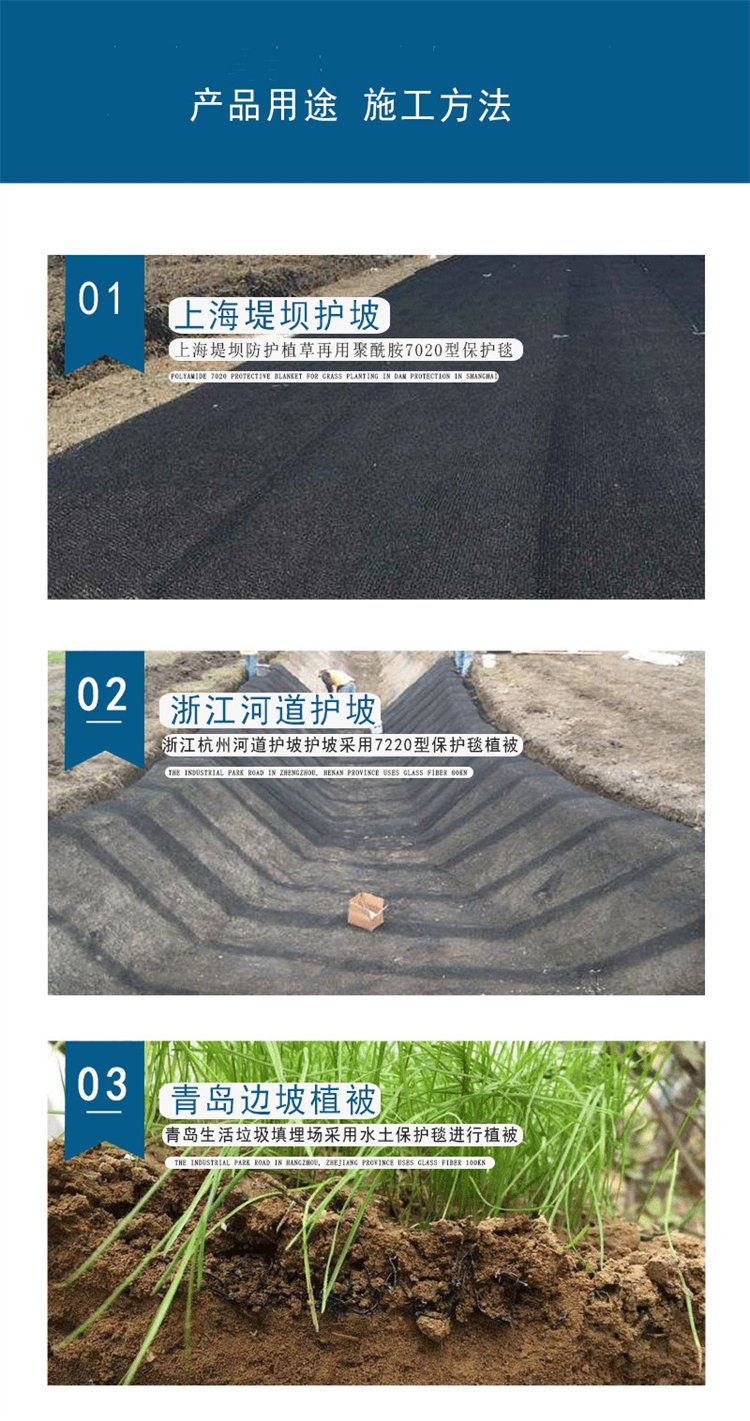 1,施工后立即施工或在水土流失严重且植被不易生长的地区立即铺设,可立即保护土壤,防止水土流失并刺激植物生长。