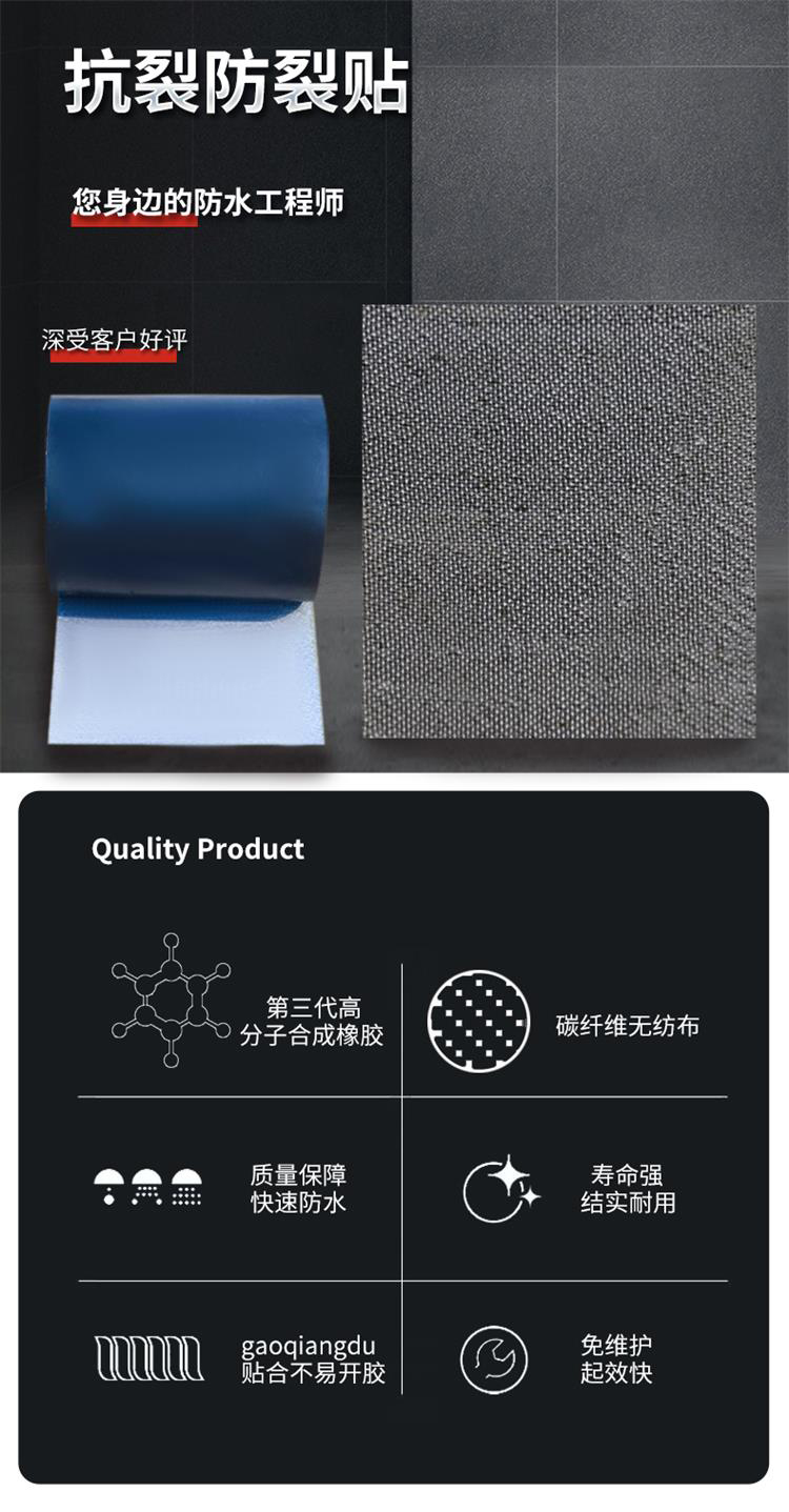 1、高分子抗裂贴别正确铺设后,应紧密结合上面层的施工,避免受潮和雨淋。