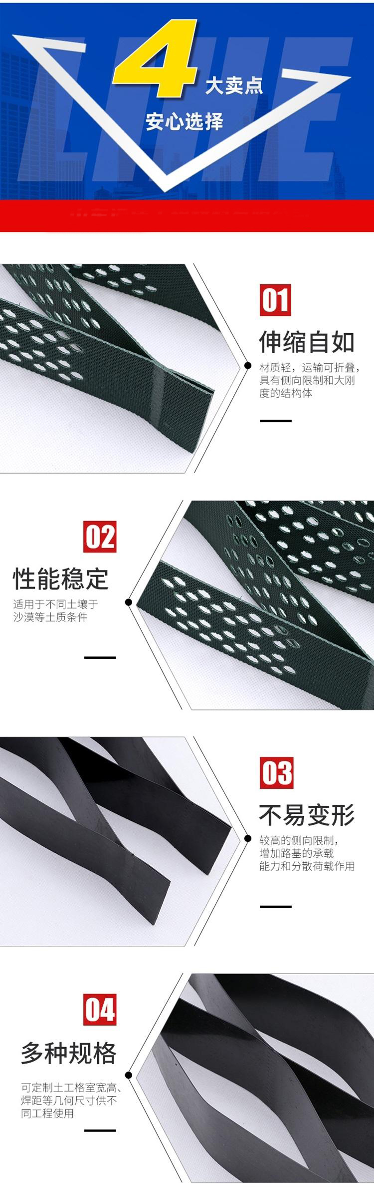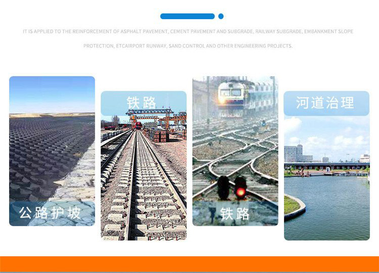 3、较高的侧向限制和防滑,防变形、有效的增强路基的承载能力和分散荷载作用。