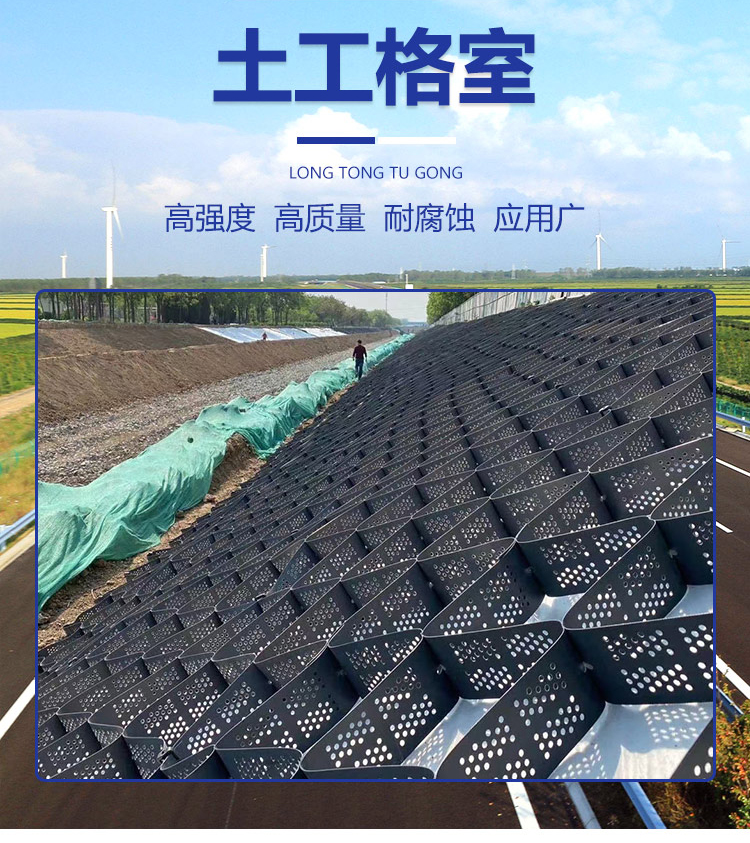 4、在遇到软地基时,采用土工格室可大大减轻施工劳动强度,减少路基厚度施工速度快、性能好,大大的降低工程造价。