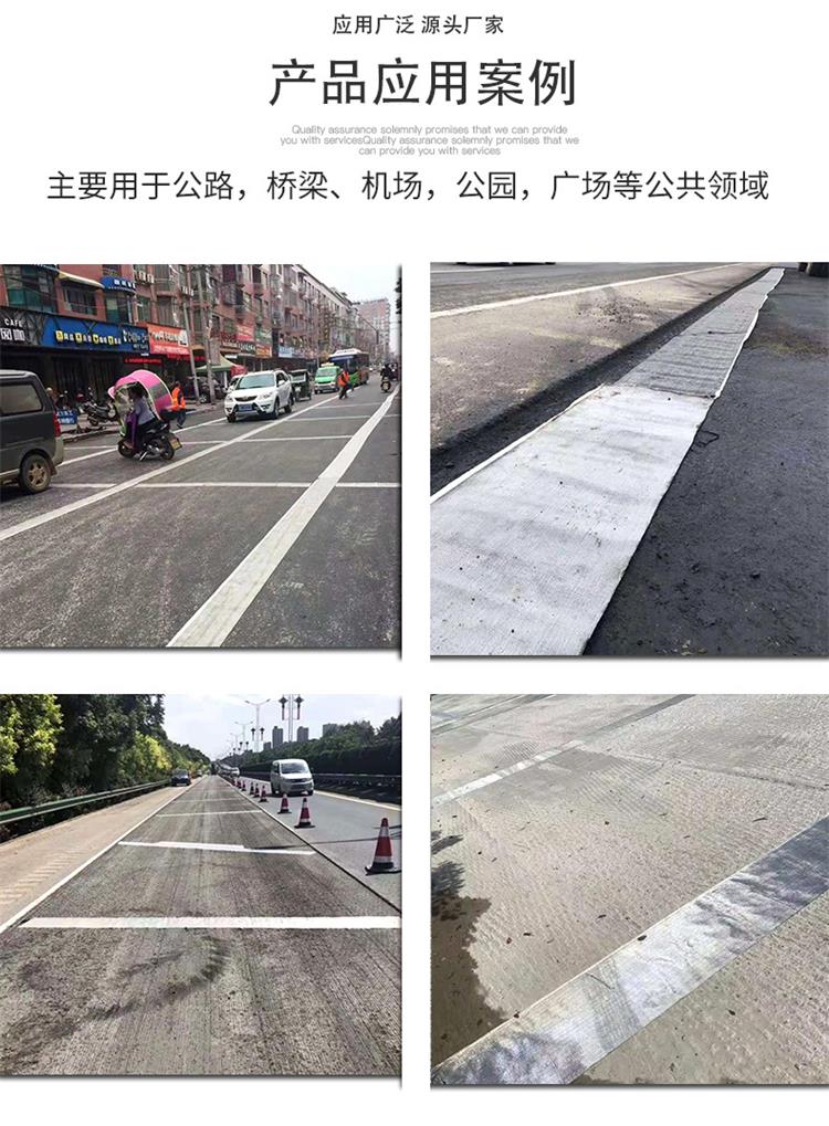 2、侨联作用。基层裂缝形成后,抗裂高强抗拉织物、耐高温、沥青相容性好的抗拉织物双层侨联作用 使开裂断面具有一定的抗弯拉能力,减少裂缝张开变形,降低裂缝的拉应力集中。