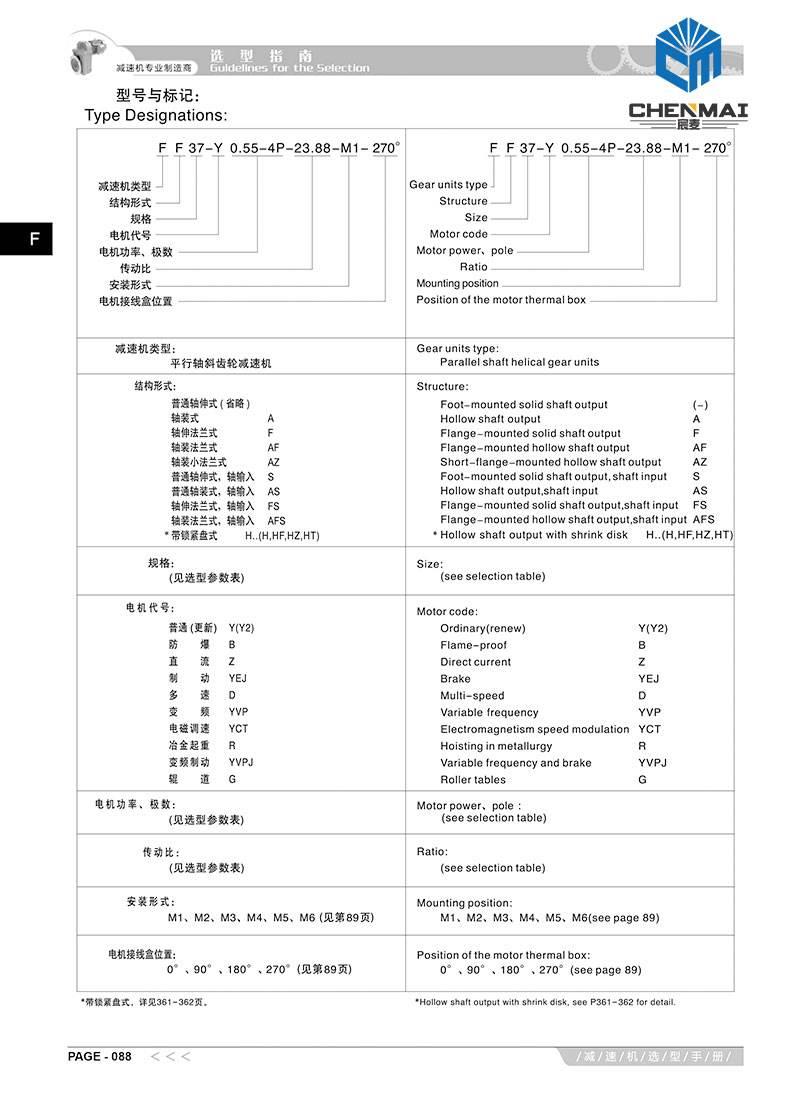 ◆ 基本型二级输入输出旋转方向相同,三级相反;F/R组合时另咨询。
