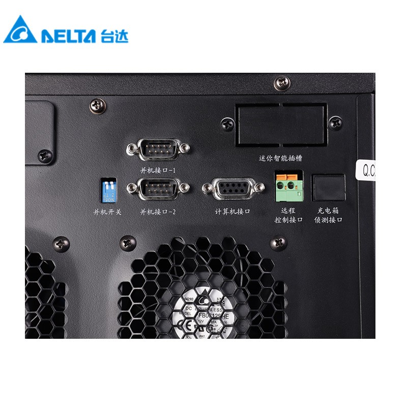 支持SNMP卡/RS232接口,可远程监控UPS状态、设置参数,并兼容台达监控软件(如Delta Grid Manager)。