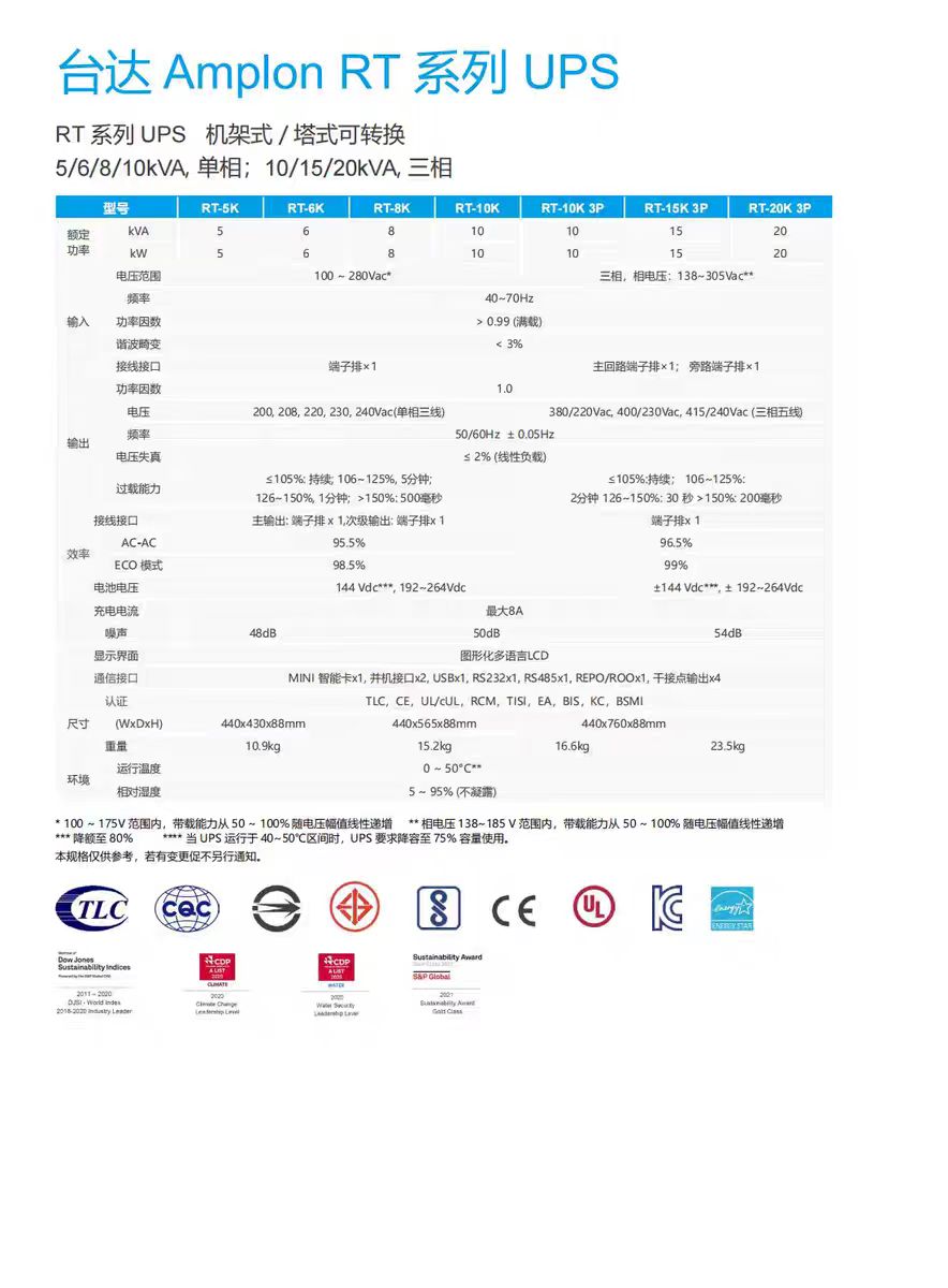以下是关于台达UPS电源RT 20K机架塔式互换20KVA主机的详细信息整理,供您参考: