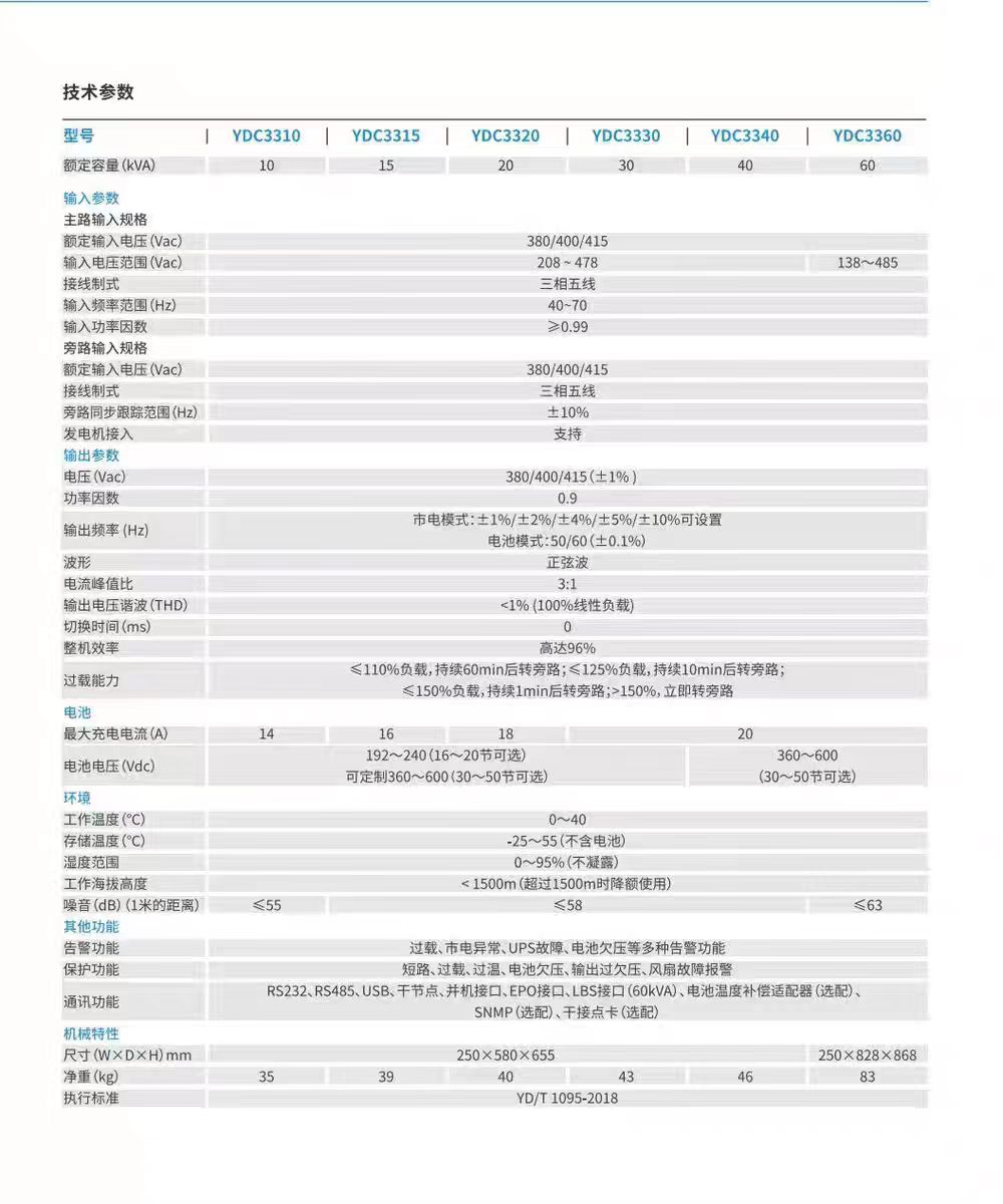 负载类型:适合服务器、存储设备、网络设备等容性负载,输出功率因数通常为0.9(即实际支持13.5kW的纯阻性负载)。