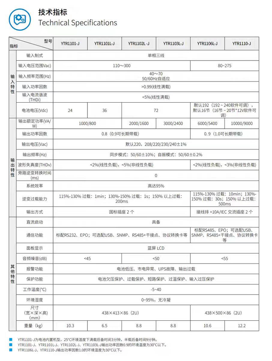 科华UPS电源YTR1101 J是一款机架式高频在线式UPS,专为1KVA功率设计,适用于服务器、网络设备等关键负载的电力保护。以下是该型号的主要特点及注意事项: