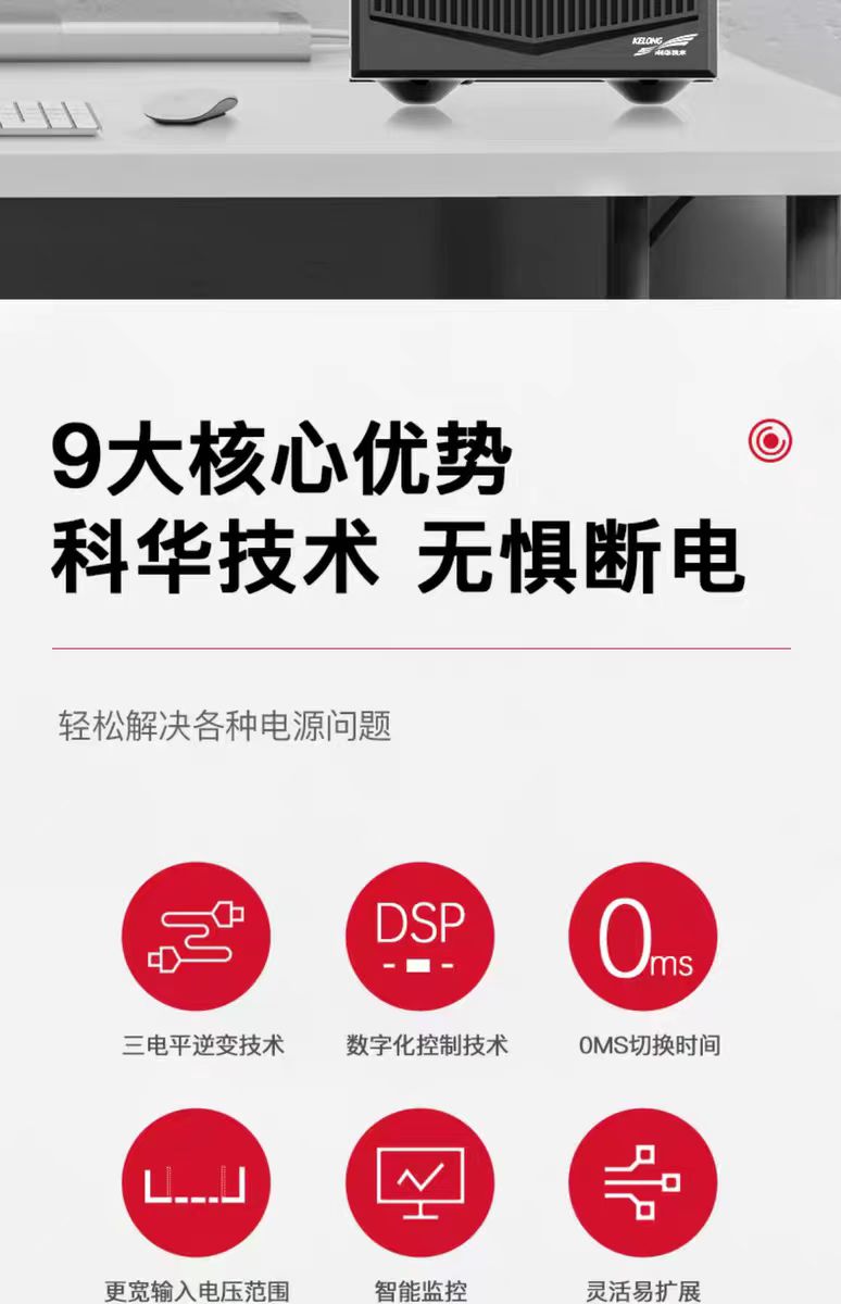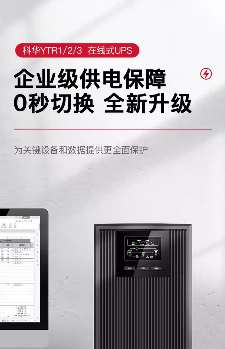 关于科华(KELONG)UPS电源型号YTR1106(6KVA在线式)的详细信息及选购建议,以下为综合整理的内容: