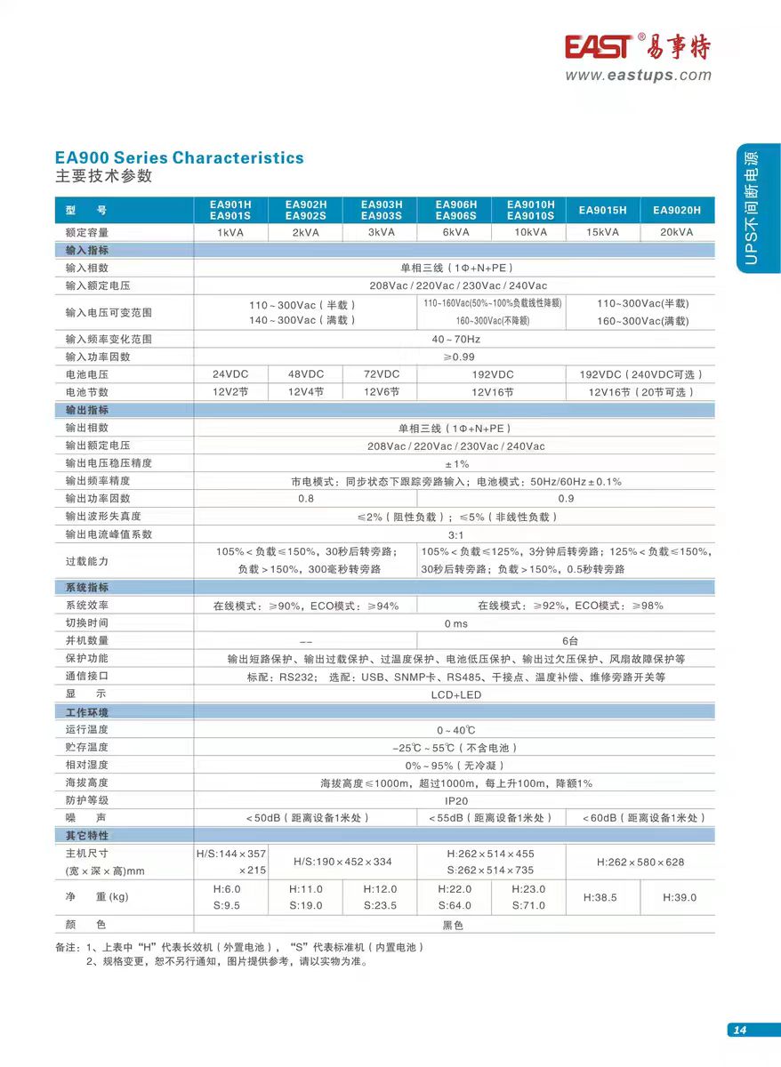 易事特(EAST)EA9010S是一款在线式UPS电源,专为机房、数据中心等关键设备提供稳定电力保护。以下是关于该型号的详细解析及使用建议: