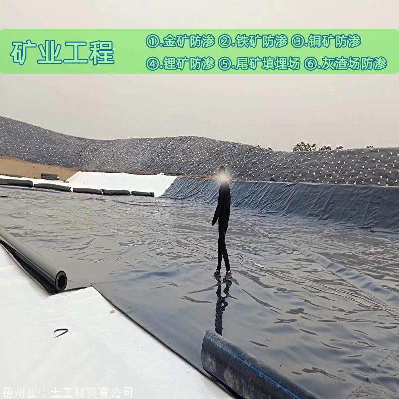 南宁防渗膜有限公司生产的高密度聚乙烯1.5mm土工膜,公称厚度1.5毫米,平均厚度偏差-5%,拉伸屈服强度22N/mm,拉伸断裂强度40N/mm。广泛应用于油罐基础防渗、石化管道防渗,2.0HDPE光面土工膜用于储油罐防渗、油田防渗、事故浆液罐防渗;1.5mmHDPE土工膜用于生活垃圾填埋场、固体废弃物流填埋场、工业垃圾填埋场、有害物填埋场、GH-2S型1.0mmHDPE土工膜用于垃圾填埋场覆盖、卫生垃圾填埋场覆盖、卫生垃圾填埋处理站;城建标准质量双光面1.5HDPE膜用于金矿防渗、铁矿防渗、铜矿防渗、锂矿防渗、煤矿防渗、GH-2S型1.5双光面HDPE膜用于尾矿填埋场、溶解池、灰渣场防渗;黑膜沼气池、沼液池、氧化塘、污水储存池;污水处理池、渗滤液调节池、雨水收集池、蓄水池防渗、农业灌溉水池、1.5土工膜用于化工污水池防渗施工;高尔夫球场景观湖防渗、0.75mmHDPE防渗土工膜用于景观河道、园林水系、景观湖泊、1.0mmHDPE防渗土工膜用于人工湖、景观水池;0.5mm厚度防渗膜用于养鱼池防渗、虾塘、甲鱼池、泥鳅养殖池、黄鳝养殖池、水蛭池养殖。