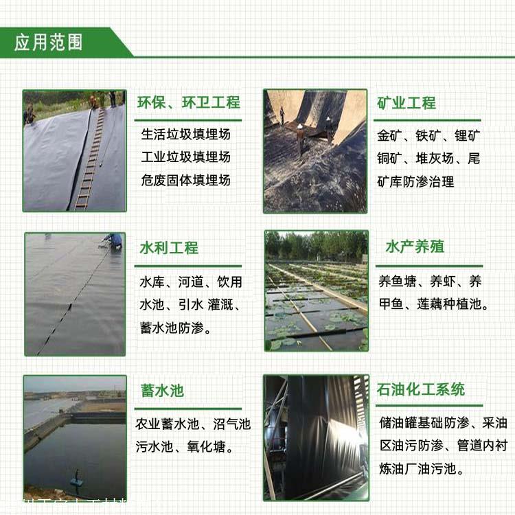 4、园林(人工湖,池塘,高尔夫球场的水塘底衬,护坡等)。化工沉淀池HDPE防渗膜型号_2.0mm_1.5mm_1.0mm_高密度聚乙烯膜