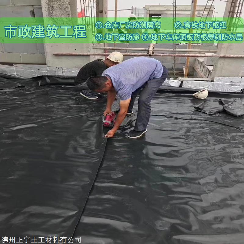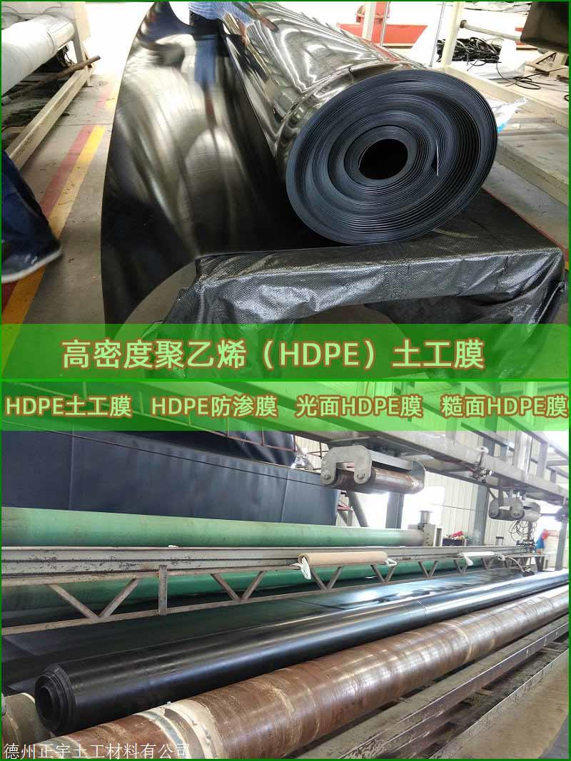 4.物理,化学性能优:HDPE防渗膜抗老化,抗紫外线,极好的抗撕裂,抗穿刺能力,脆性低,热变形小,具有良好的化学稳定性,耐高低温,耐沥青,油及焦油,耐酸、盐等化学溶液。HDPE1.5毫米厚土工膜执行国标代号:GB/T17643-2001.