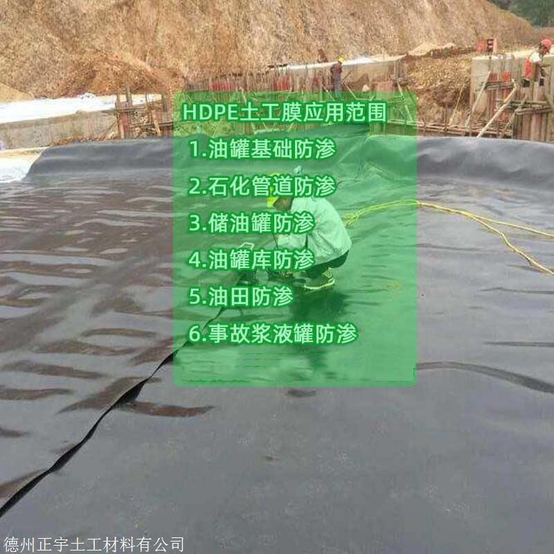 3、市政建筑工程(排水板隧道排水反滤、地下建筑工程排水降压,甘肃光面1.5mmHDPE土工膜(防渗膜)用于种植屋面防渗、地铁隧道防渗、屋顶花园防渗与抗植物根系穿刺破坏、高档厂房与仓库地面防渗防潮、污水管道的防腐内衬;外水导流降压与外排,软土基础加固与排水等各类防渗工程)