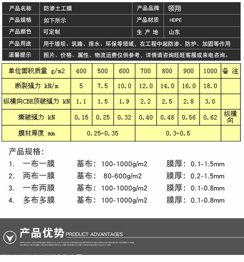 一、江西土工膜规格型号【2.0HDPE土工膜、1.5HDPE土工膜、1.0HDPE土工膜、0.5HDPE土工膜】;(江西)土工布型号规格【透水土工布、过滤土工布、隔离土工布】;江西复合土工膜型号规格【一布一膜、二布一膜、防水土工布、防渗土工布】;(江西)防草布【盖草布、除草布、遮草布、果园防草布、地布、园艺地布、聚乙烯PE防草布、聚丙烯PP防草布】;江西膨润土防水毯型号规格【GCL钠基膨润土垫,4500克钠基膨润土防水垫、4800克GCL钠基膨润土垫、5000克GCL钠基膨润土垫、5500克天然钠基膨润土防水毯】;江西土工复合排水网【5mm高度土工复合排水网、6mm高度土工复合排水网、7mm高度土工复合排水网、6.3mm高度土工复合排水网、7.5mm高度土工复合排水网】;江西EVA防水板【隧道EVA防水板厂家,1.0EVA防水板、1.2EVA防水板、1.5EVA防水板、2.0EVA防水板】。