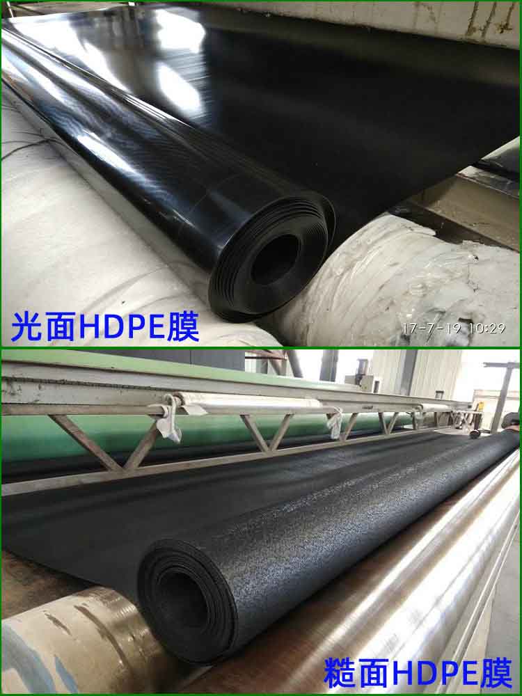 1.光面1.5mmHDPE土工膜是一种柔性防水材料,具有很高的防渗系数(1×10-17 cm/s)