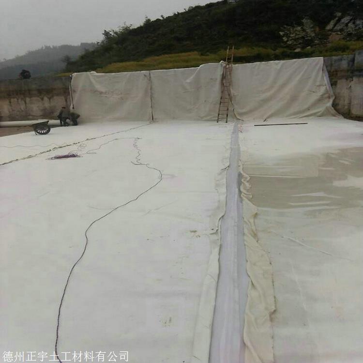两布一膜,为一层重量为100g-700g/平米的PE防渗膜两面过化学或热粘合工艺,各复合上每面重量为200g-600g/平米的无纺土工布构成,构成了以PE膜为防渗主体,以复合土工布为增强抗拉强度,抗异物穿刺能力强,北京300克防水土工布 正宇牌300g不透水土工布 一布一膜 防渗同时具备了双平面排水功能。复合土工膜具有良好的耐热性耐寒性和化学稳定性好,具有较高的抗拉强度,抗老化和抗腐蚀性能。机械拉伸强度好,具有很好的介电性能,耐环境应力开裂性能较好。复合土工膜增加了膜在基层的摩擦系数,防滑性能好。