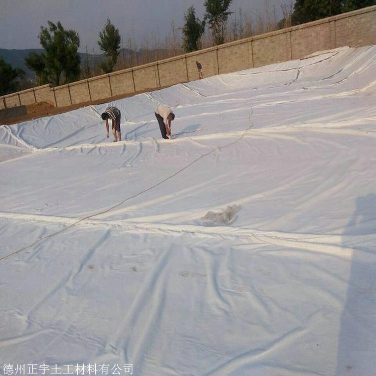 有纺土工布 ---- 即经续交织的土工布。其厚度较薄,一般厚度为 0.2mm 、 0.4mm 、 0.7mm 。其抗拉能力较强,约 250kg/cm2 ,内蒙古300克防水土工布 正宇牌300g不透水土工布 两布一膜 防水渗透系数较大,约 6.1*10-4cm/s ,且质地稳定,耐久性好无纺土工布 ---- 即不规则排列的纤维经粘结,针刺制成的网状物。常用是针刺型无纺土工布。这类土工布具有压缩性较强,孔隙度较大,导水性能较好,优于有纺土工布。内蒙古300克防水土工布 正宇牌300g不透水土工布 两布一膜 防水 不含化学添加剂,貤不经热处理,是环保型的建筑材料。它能替代传统的工程材料及施工方法,施工更安全,并有助于环境保护,能更经济、有效、持久地解决工程建设中基本问题。 具有良好的力学性能,透水性好,并能抗腐蚀,抗老化。 具有隔离、反滤、排水、保护、稳固、加强等功能。能适应凹凸不平的基层,能抵抗施工外力破坏,蠕变小,长期荷载下仍能保持原有的功能。整体连续性好、重量轻、施工方便。
