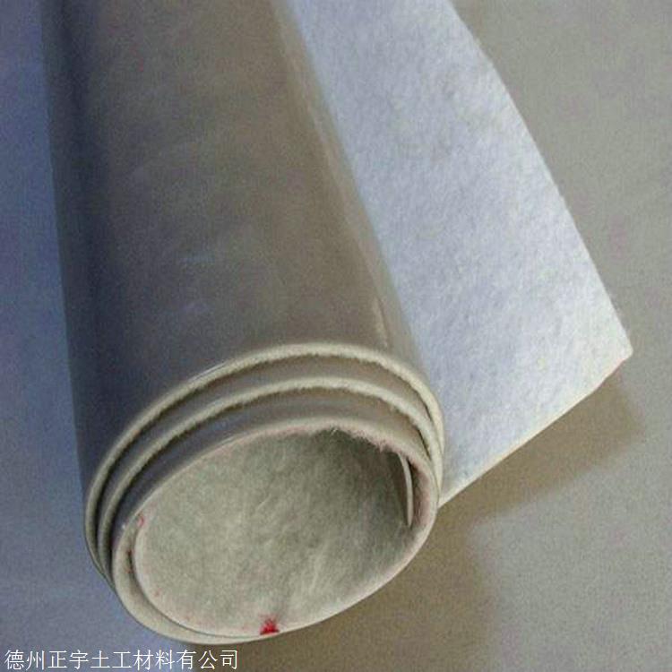 一布一膜,为一层重量为100g-700g/平米的HDPE土工膜,过化学或热粘合上一层200g-600g/平米的无纺土工布为保护层的复合结构;复合土工膜具有很高的抗拉强度和抗导物穿刺能力,并具备了平面排水功能。复合土工膜具有良好的耐热性耐寒性和化学稳定性好,具有较高的抗拉强度,抗老化和抗腐蚀性能。机械拉伸强度好,具有很好的介电性能,耐环境应力开裂性能较好。复合土工膜增加了膜在基层的摩擦系数,防滑性能好。黑龙江300克防水土工布 正宇牌300g不透水土工布 两布一膜 防水