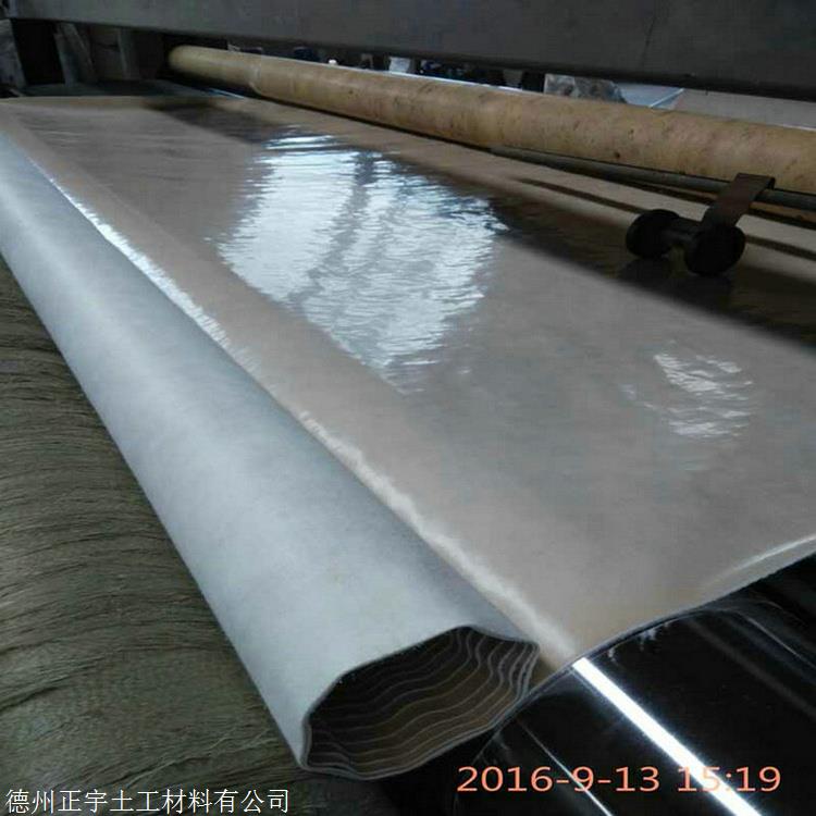 两布一膜,为一层重量为100g-700g/平米的PE防渗膜两面过化学或热粘合工艺,各复合上每面重量为200g-600g/平米的无纺土工布构成,构成了以PE膜为防渗主体,以复合土工布为增强抗拉强度,抗异物穿刺能力强,湖南300克防水土工布 正宇牌300g不透水土工布 两布一膜 防水同时具备了双平面排水功能。复合土工膜具有良好的耐热性耐寒性和化学稳定性好,具有较高的抗拉强度,抗老化和抗腐蚀性能。机械拉伸强度好,具有很好的介电性能,耐环境应力开裂性能较好。复合土工膜增加了膜在基层的摩擦系数,防滑性能好。
