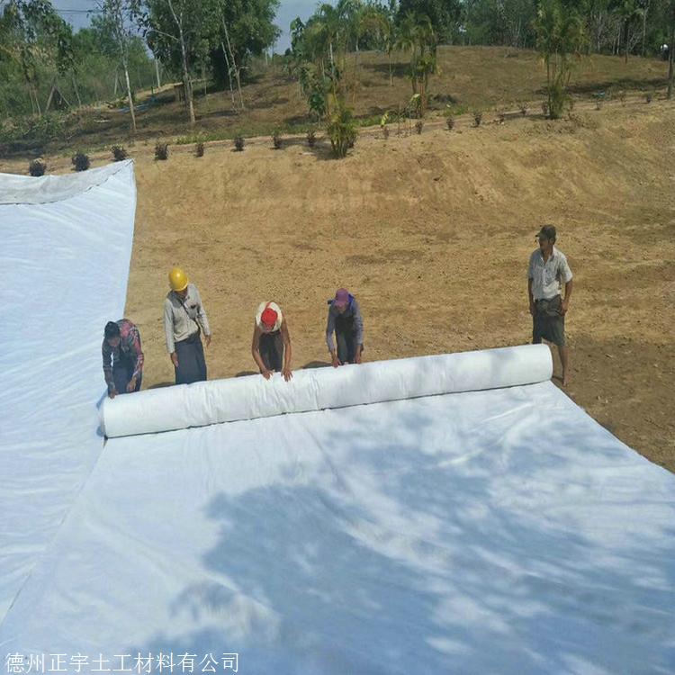 有纺土工布 ---- 即经续交织的土工布。其厚度较薄,一般厚度为 0.2mm 、 0.4mm 、 0.7mm 。其抗拉能力较强,约 250kg/cm2 ,海南300克防水土工布 正宇牌300g不透水土工布 一布一膜 防渗渗透系数较大,约 6.1*10-4cm/s ,且质地稳定,耐久性好无纺土工布 ---- 即不规则排列的纤维经粘结,针刺制成的网状物。常用是针刺型无纺土工布。这类土工布具有压缩性较强,孔隙度较大,导水性能较好,优于有纺土工布。海南300克防水土工布 正宇牌300g不透水土工布 一布一膜 防渗 不含化学添加剂,貤不经热处理,是环保型的建筑材料。它能替代传统的工程材料及施工方法,施工更安全,并有助于环境保护,能更经济、有效、持久地解决工程建设中基本问题。 具有良好的力学性能,透水性好,并能抗腐蚀,抗老化。 具有隔离、反滤、排水、保护、稳固、加强等功能。能适应凹凸不平的基层,能抵抗施工外力破坏,蠕变小,长期荷载下仍能保持原有的功能。整体连续性好、重量轻、施工方便。