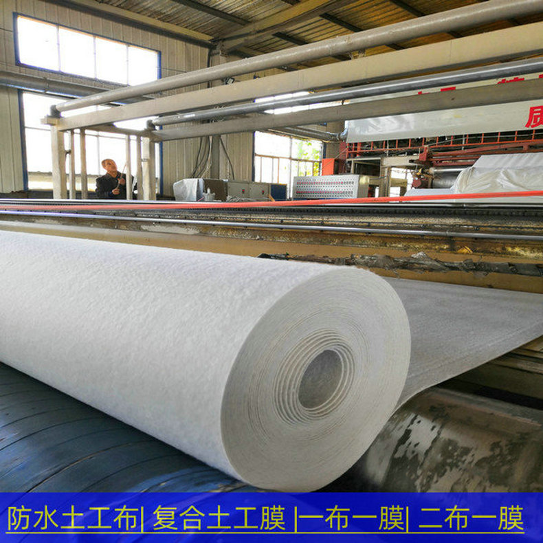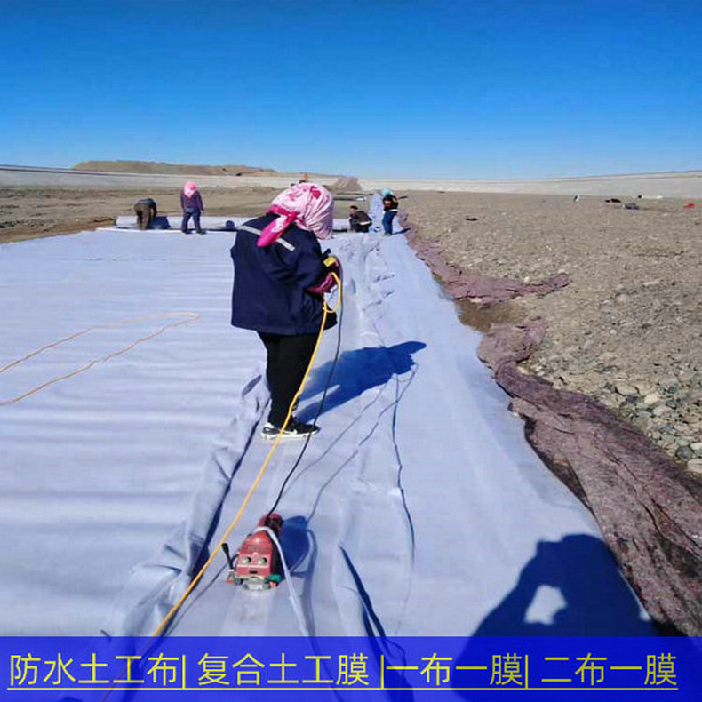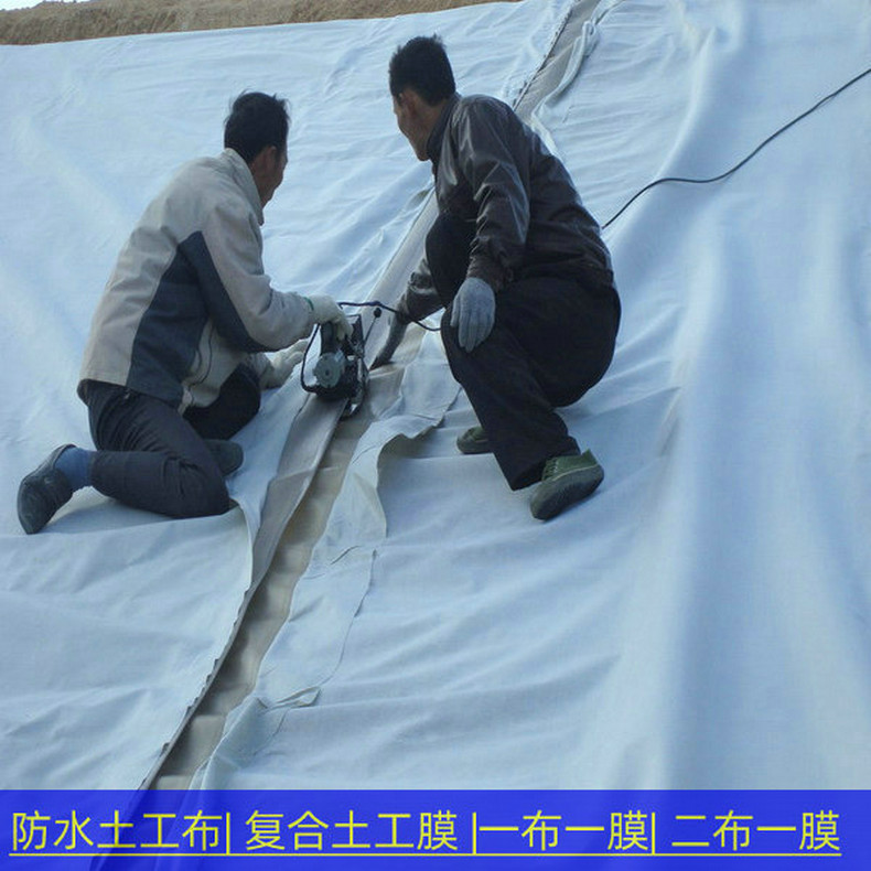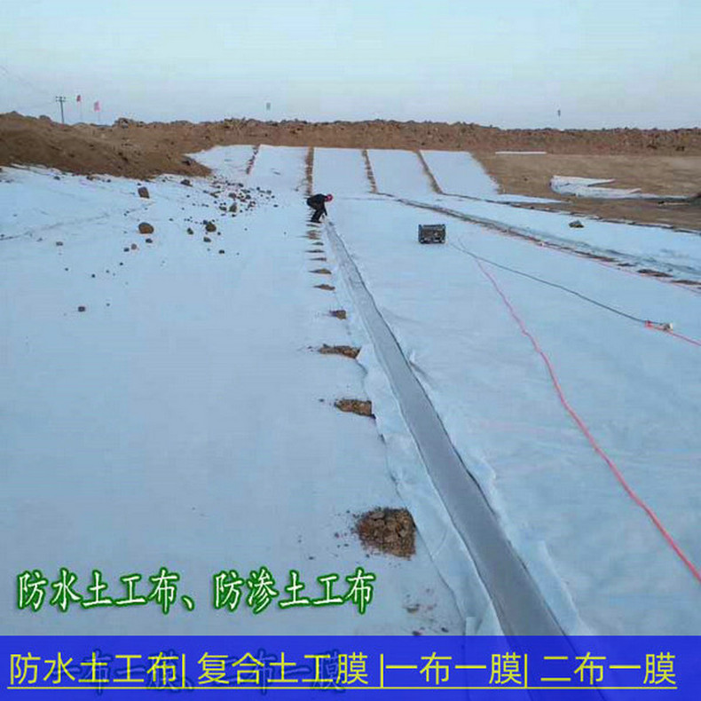 复合土工膜是用土工织物与土工膜复合而成的不透水材料,它主要用于防渗,复合土工膜分为一布一膜和两布一膜、宽幅4-6m,重量为200-1500g/m2,抗拉、抗撕裂、顶破等物理力学性能指标高,能满足水利、市政、建筑、交通、地铁、隧道等土木工程需要。由于其选用高分子材料且生产工艺中添加了防老化剂,故可在非常规温度环境中使用。