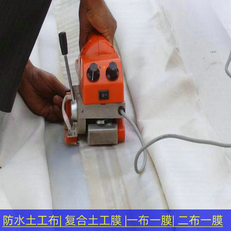 3.施工中,首先要用料径较小的砂土或粘土找平基面,然后再铺设土工膜。土工膜不要绷得酞紧,两端埋入土体部分呈波纹状,后面在所铺的土工膜上用细砂或粘土铺一层10cm左右过渡层。砌上20-30cm块石(或砼预制块)作防冲保护层。施工时,应尽力避免石块直接砸在土工膜上,边铺膜边进行保护层的施工。复合土工膜与周边结构物连接应采用膨胀螺栓和钢板压条锚固,连接部位要涂刷乳化沥青(厚2mm)粘接,以防该处发生渗漏。600克两布一膜厂家,600克SN2短纤针刺非织造复合土工膜。