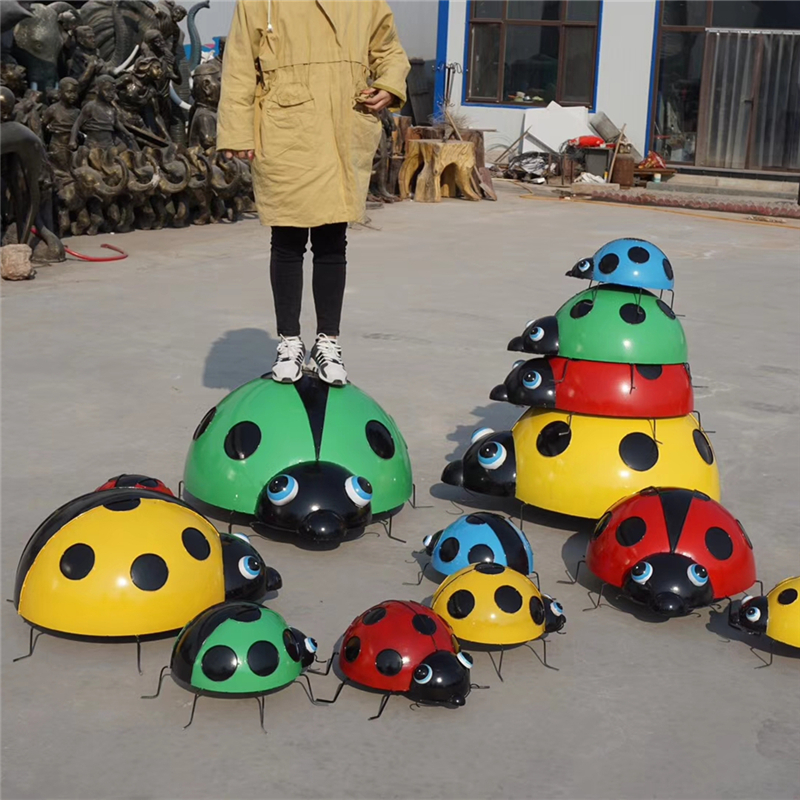 因为七星瓢虫好看的外形,所以在景观下品设计中,他们也成为了常用的素材。不锈钢七星瓢虫雕塑大大小小摆在一起,有很好的的视觉效果。七星瓢虫雕塑的制作主要有两种造型,一种是椭圆的,还有一种是正圆的,不管是哪种造型,都是需要过锻打成型的。