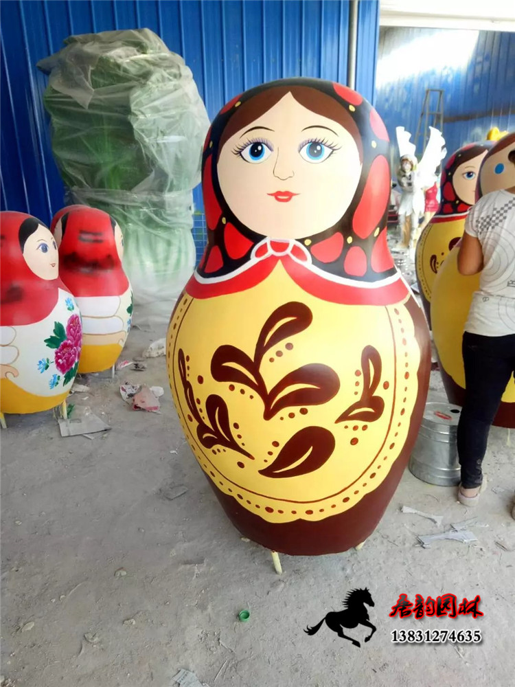 唐韵雕塑曾制作多款俄罗斯套娃雕塑,图案有专门的彩绘人员纯手工绘画,图案精美,看上去赏心悦目,非常好看,我们的模具有好几个不同的尺寸。
