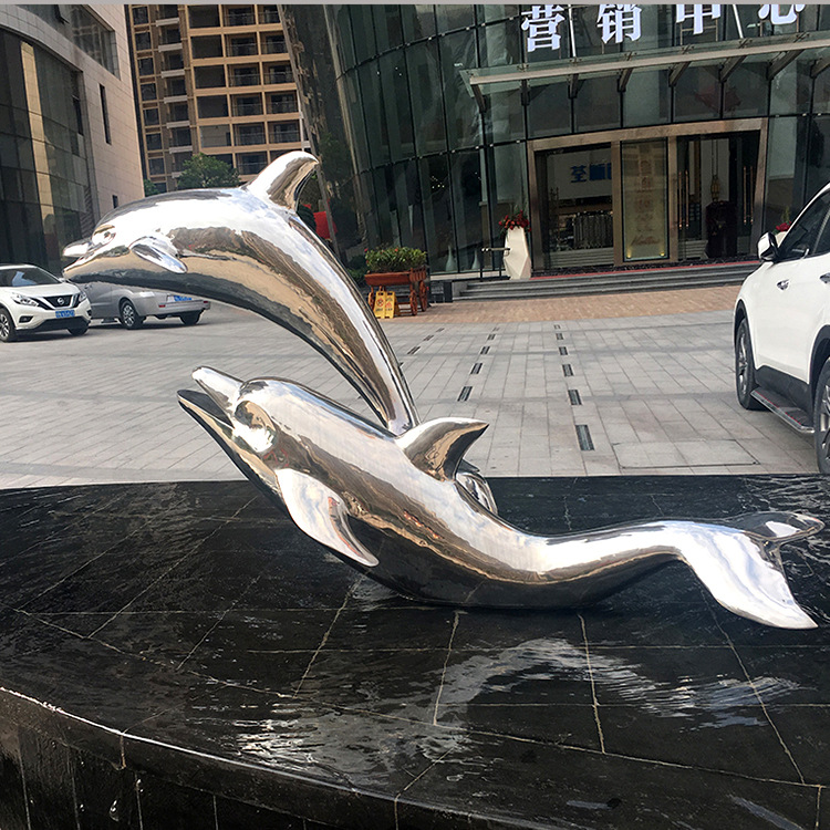 不锈钢海豚雕塑将海豚优美的身姿表现了出来,海豚雕塑往往是以成群结队的形式出现,很少有做单一的一个海豚的,常见的有三个海豚顶球的雕塑,亦或是一群海豚在海面跳跃的造型。