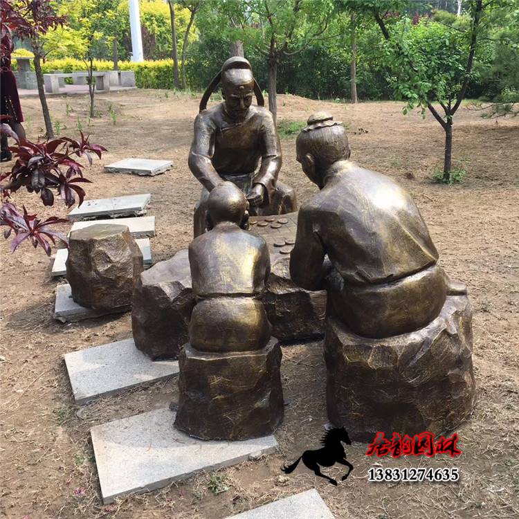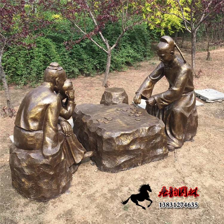 下象棋雕塑就是以下棋人物为素材而创作的雕塑,很适合放在广场、步行街等场所。民俗人物雕塑作为常见的城市雕塑类型,生动再现了那些传统民俗活动,和周围的现代商业环境相融合,相映成趣,为城市带来了盎然生机。