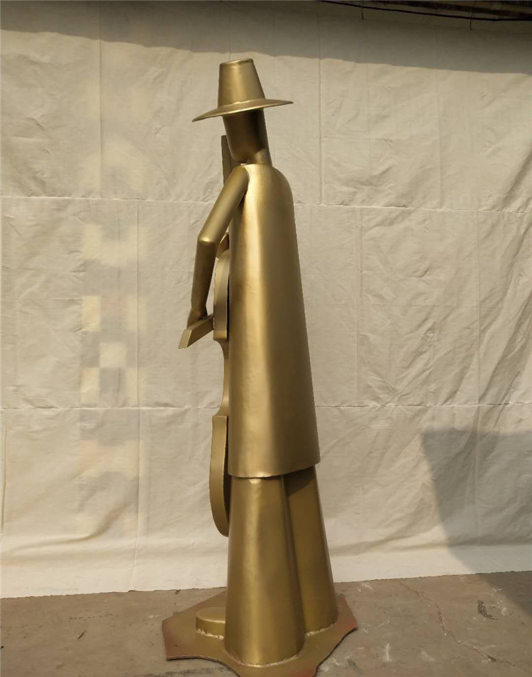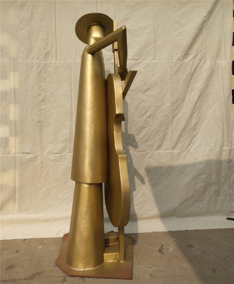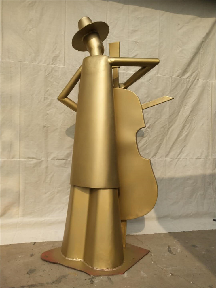 恒大的很多项目都会用到锻铜雕塑,包括人物、动物等等,其中,守候这个雕塑用的也比较多,主题是一个拉大提琴的人物,整体以抽象造型为主。所谓的锻铜雕塑,顾名思义,就是锻造出来的雕塑,先制作硬质模型,比如玻璃钢材质的模型,然后使用铜板附在模型上进行锻打,塑出造型。