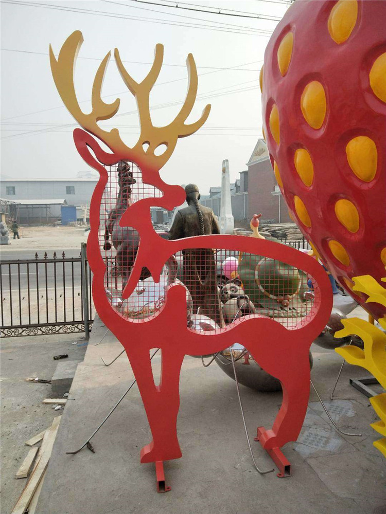 鹿,作为吉祥的象征,一直被当做雕塑的主要素材,我们在很多地方都可以看到鹿的雕塑,制作鹿雕塑的材质有很多,比如玻璃钢、不锈钢、铸铜等等,相对于玻璃钢和铸铜材质来说,铁艺材质比玻璃钢的结实,比铸铜的便宜,而且铁艺鹿雕塑看起来在外形上更加时尚现代,可以说是很不错的选择。