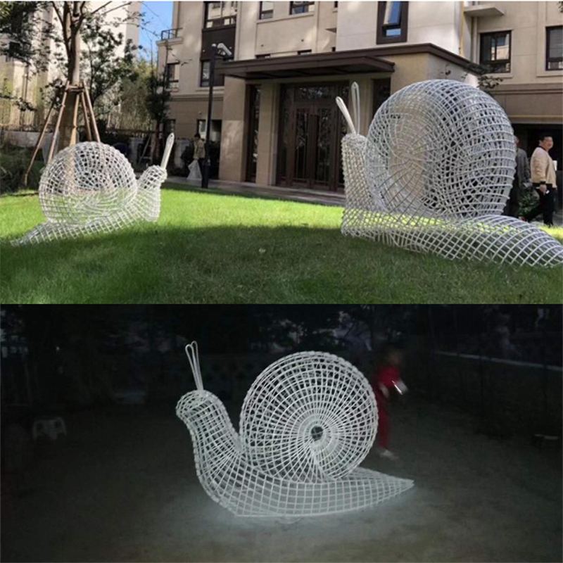 铁艺蜗牛雕塑是用钢丝编织的,纯手工制作的雕塑,制作这种雕塑,步就要制作模型,使用泡沫或者玻璃钢都可以,然后使用直径3.8毫米的钢丝进行塑形并焊接,后打磨喷漆,是一种全新的雕塑类型。