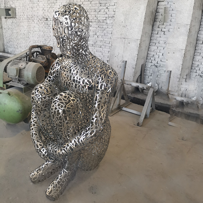不锈钢镂空人物雕塑就是一种创新的雕塑,今天介绍的雕塑是字母拼接的镂空人物,类似的有不锈钢镂空鹿雕塑,也有很多是用字母拼接的。制作这种雕塑,首先要制作模型,然后根据整体尺寸确定字母大小,然后进行激光切割,把用不锈钢板切割而成的字母拼接在一起,附在模型上进行塑形,形成人像造型,后制作出成品。