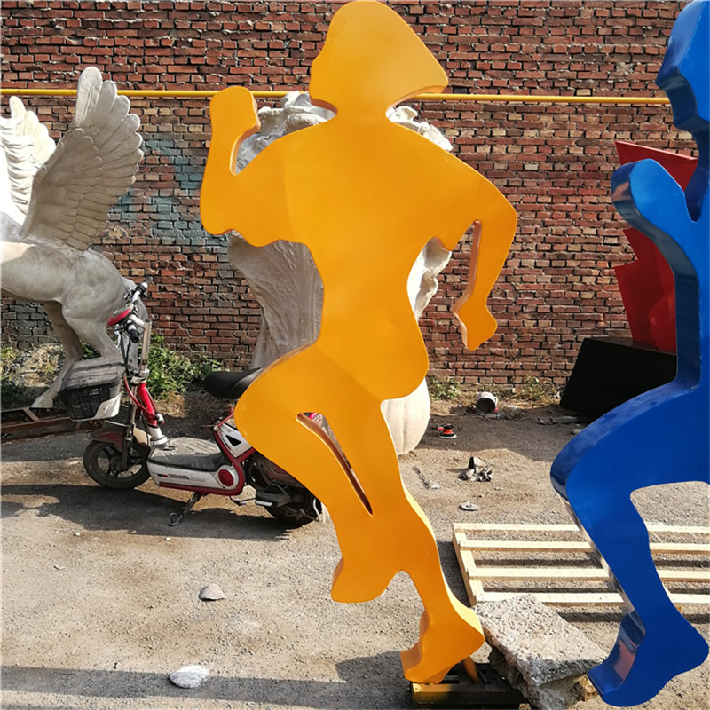 唐韵园林雕塑锐意创新,本着不和其他厂家撞车的原则,专门制作造型新颖,不雷同的运动人物剪影雕塑,除了跑步人物,我们还有很多其他运动主题的雕塑,比如踢足球,打篮球,打羽毛球,骑车人物等等。材质一般都是镀锌板或者不锈钢的,用的都是1.5毫米厚的板材,很多厂家用的都是1毫米的板材,我们做的产品更结实。