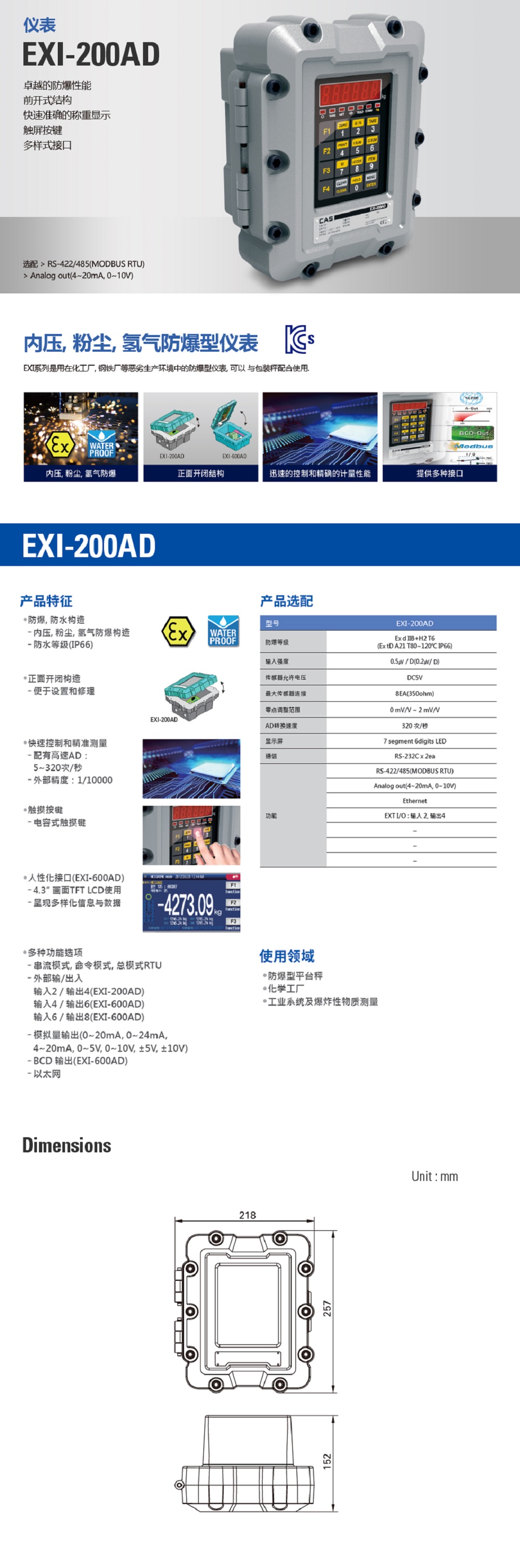 EXI-200AD防爆仪表 EXI-600AD隔爆称重控制仪表韩国CAS凯士 称重仪表EXI-200AD防爆仪表 韩国CAS凯士防爆秤仪表 工业用仪表显示控制器 称重控制显示器CAS韩国凯士 EXI-200AD防爆仪表 韩国CAS控制仪表 环境恶劣等特殊场合使用