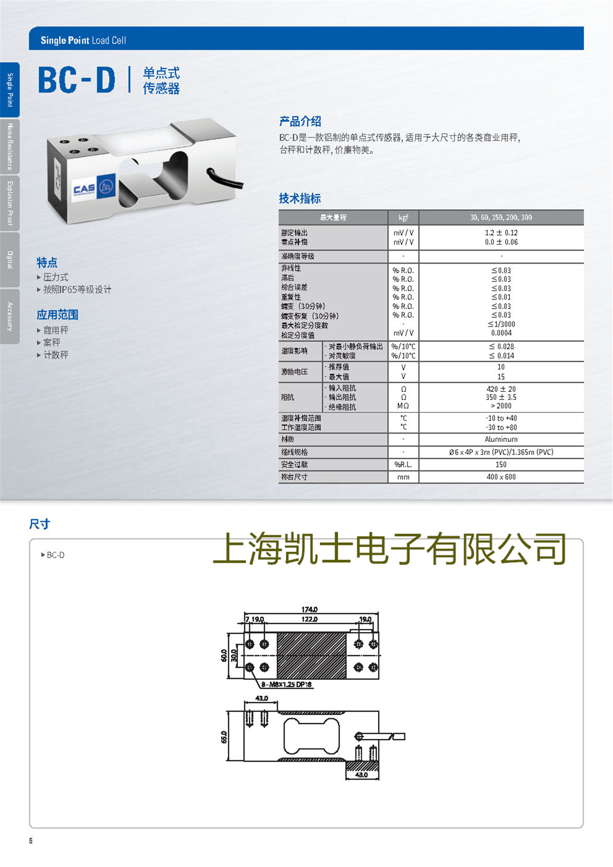 BC-D系列称重传感器 是上海凯士电子有限公司的商业产品。