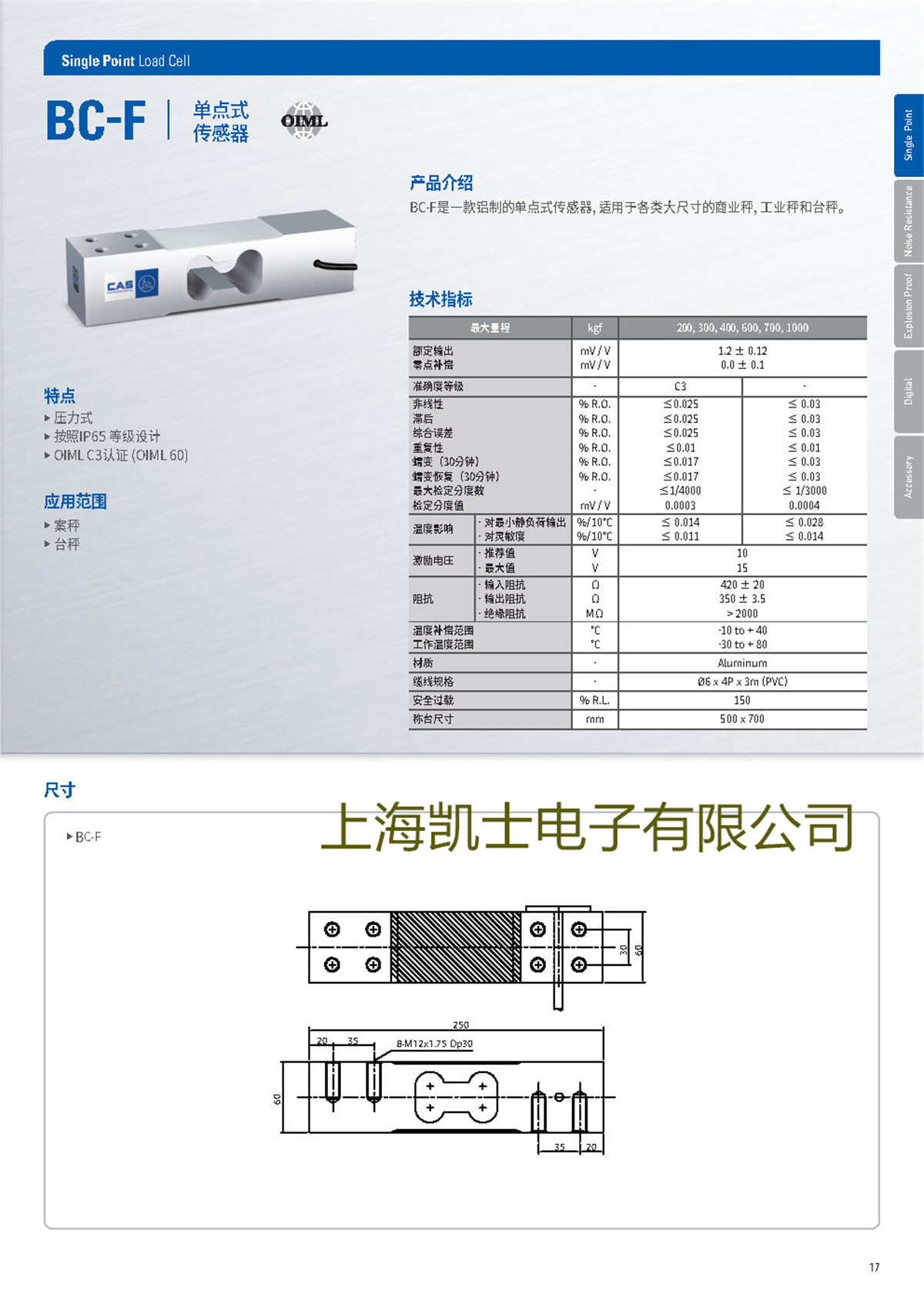 韩国CAS凯士单点式称重传感器BC-F-400L 300L 200L/kgf BC-F-600L 700L 1000L 韩国CAS凯士BC F600L称重传感器厂家 商业秤工业秤台秤BC-F-400L 铝制单点式称重传感器韩国CAS BC-F600L称重传感器厂家系列称重传感器 是上海凯士电子有限公司的商业产品。