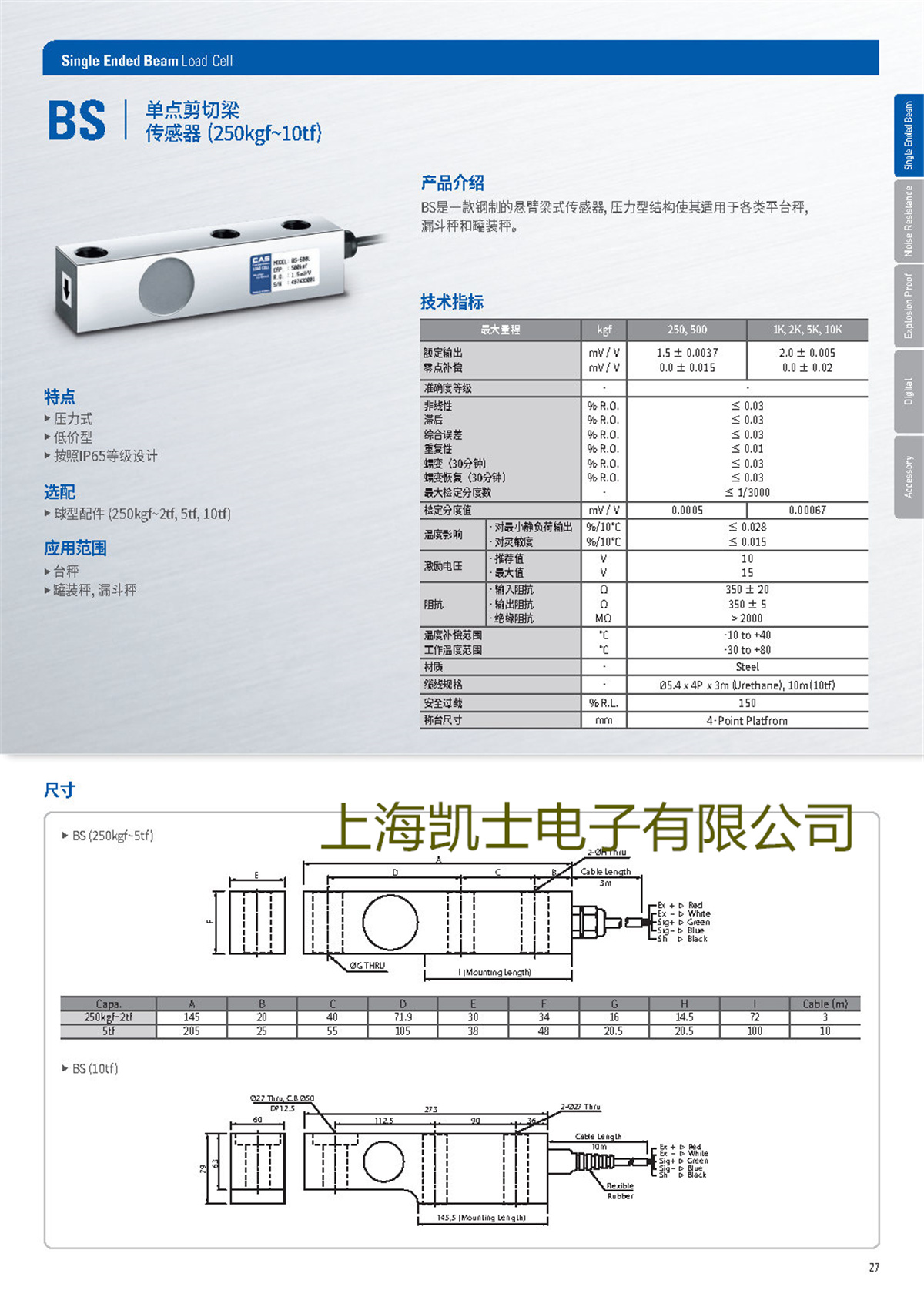 二、韩国凯士CAS BS款不锈钢悬臂梁式称重传感器 全部型号