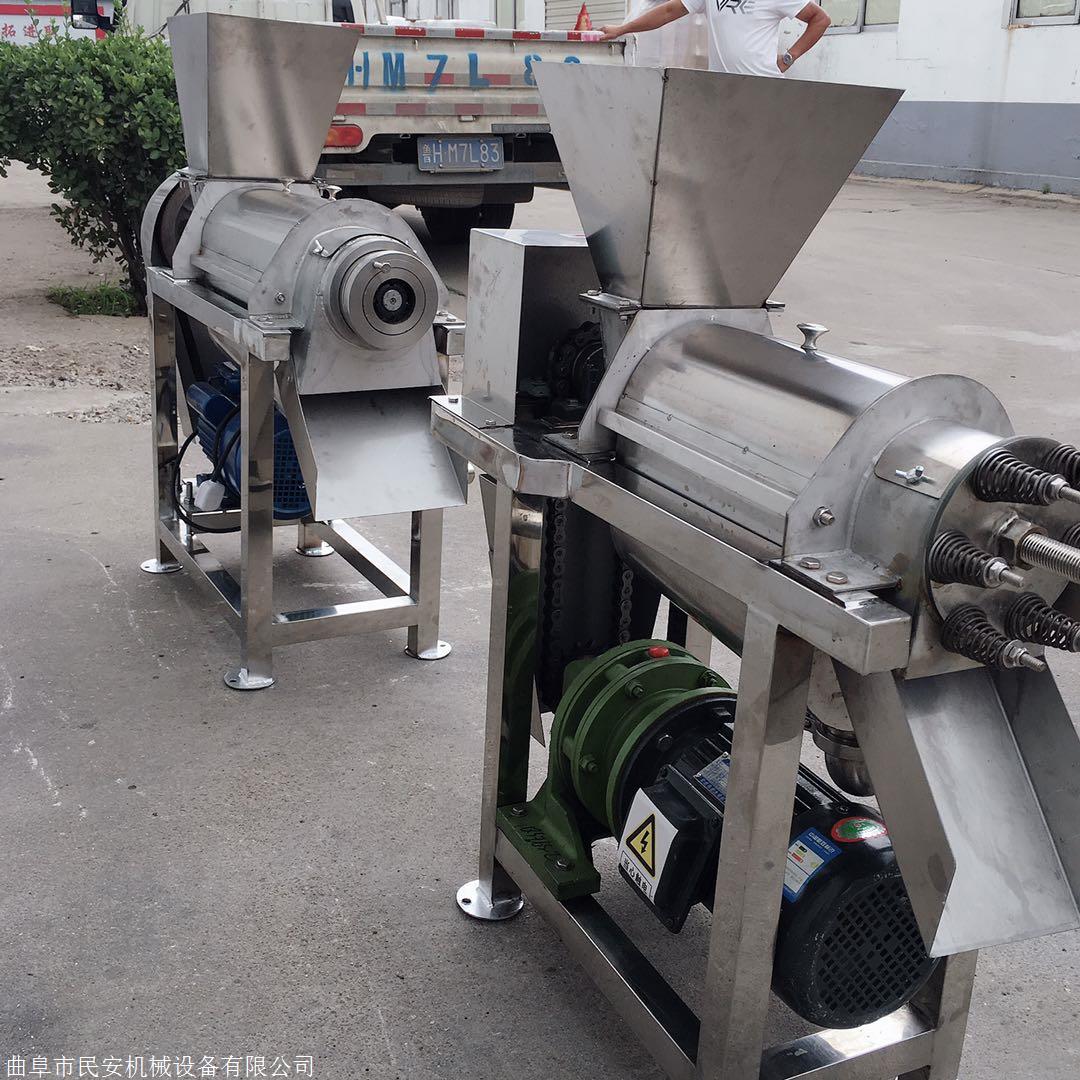 工作原理:破碎后的果肉、汁、皮通过进料斗进入双螺旋榨汁机,由于螺旋沿着料渣出口方向底径逐渐加大而螺距逐渐减少,当物料被螺旋推进时,因螺旋腔体积缩小,形成对物料的压榨。螺旋主轴的转动方向从进料斗向渣槽方向看去,为逆时针方向。原料加入进料斗中,在螺旋的推进下受压,其压榨的汁液通过过滤网流入底部的盛汁器,而废料则通过螺旋及调压的锥形部分之间形成的环状空隙排出,调压头沿轴向的移动并直接受液压系统控制。调节液压系统的压力,即调整排渣的阻力,即可改变出汁率,但如果液压系统压力过大,在强力挤压下,部分渣的颗粒会和汁一起通过过滤网被挤出,尽管出汁增加,但汁的质量相对下降,液压系统压力的大小应视用户具体工艺要求而定。从而达到汁与渣自动分离的目的。