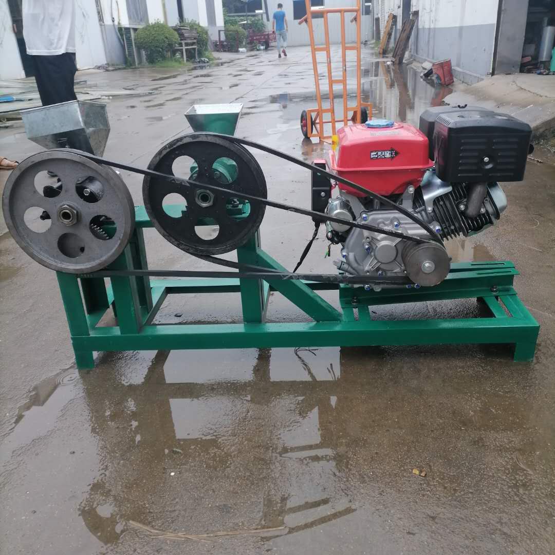 以大米、玉米、高粱米、黄米等为原料,并可添加各种调料,利用自身发热能将原物膨化成90倍以上好滋味膨化果。启用动力后加入原料就可生产出空心棒形、花生形、饼干形形、小米花形、 麻花形、梅花形、等7种各种形状各异的膨化果,果实香酥甜脆,老小皆宜。如另外配上模具可加工五角星形、四方形、绿豆形、菱形、锅巴形、火柴盒形等膨化果,膨化出的产品形状多样化,并具有自断成形装置,时产量25-50公斤,同时膨化出的玉米花型可制作。民安机械随机配有模具头和机器使用操作说明书。该机以体积小、重量轻、结构精巧、操作技术简单和可观的经济效益,赢得了广大用户的青睐。