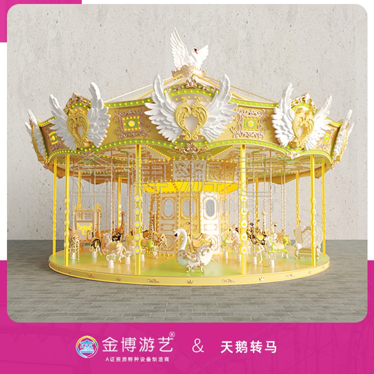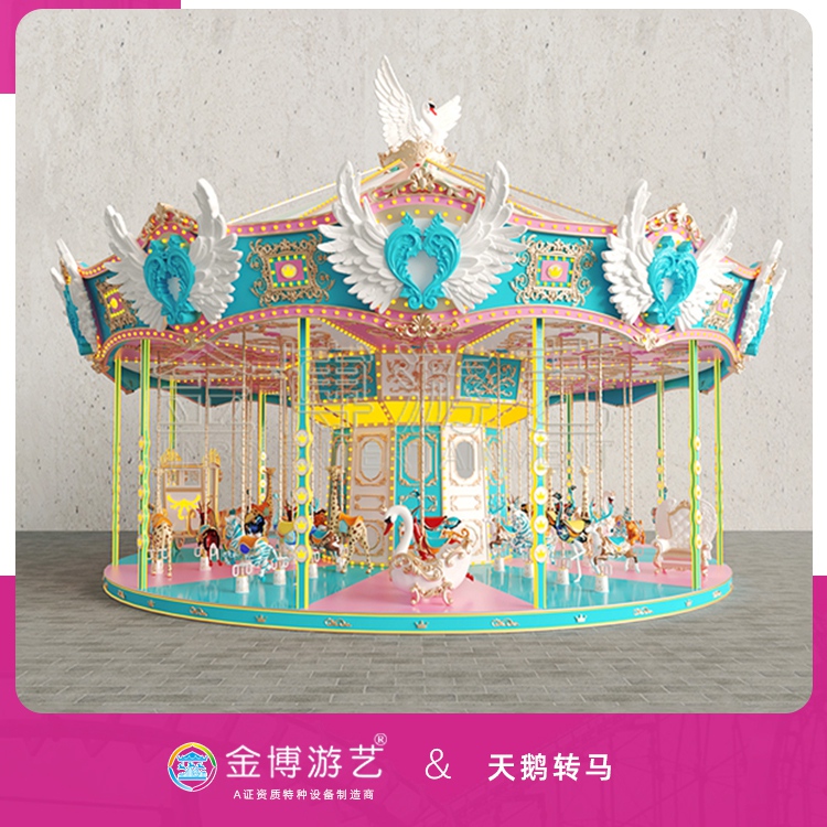 转马以为主要造型元素的旋转木马,座舱造型形态各异,有的造型优雅地伸展翅膀,仿佛在天空中翱翔;有的则微微低头,像是在梳理羽毛。的颜色也多种多样,给人一种梦幻、浪漫的感觉。转马运行速度相对较为缓慢和稳定,适合不同年龄段的游客乘坐,能够让乘客在旋转的过程中欣赏周围的美景,享受身心的放松。游客坐在造型的座位上,随着转马缓缓旋转,仿佛置身于童话世界中。同时搭配动感美妙的音乐,为游玩过程增添更多的乐趣和氛围。