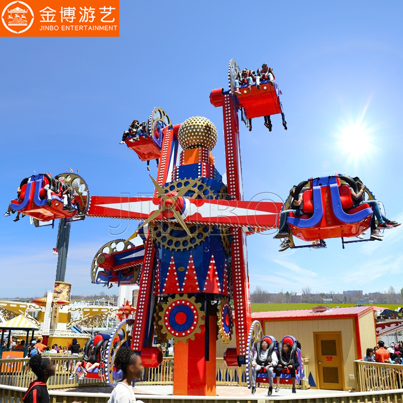 金博游艺推出的新型游乐设备有:翻江倒海、果园火车、急速飞行、蜻蜓点水、全面出击、天眩地转、星际穿越、小八闹天山、变形金刚、埃及探险、高空飞翔、疯狂部落喷球车、疯狂摩托车、欢乐探险、空中巴士、空中飞舞、神舟一号、特技飞行、消防战车等大中型游乐设备款式。