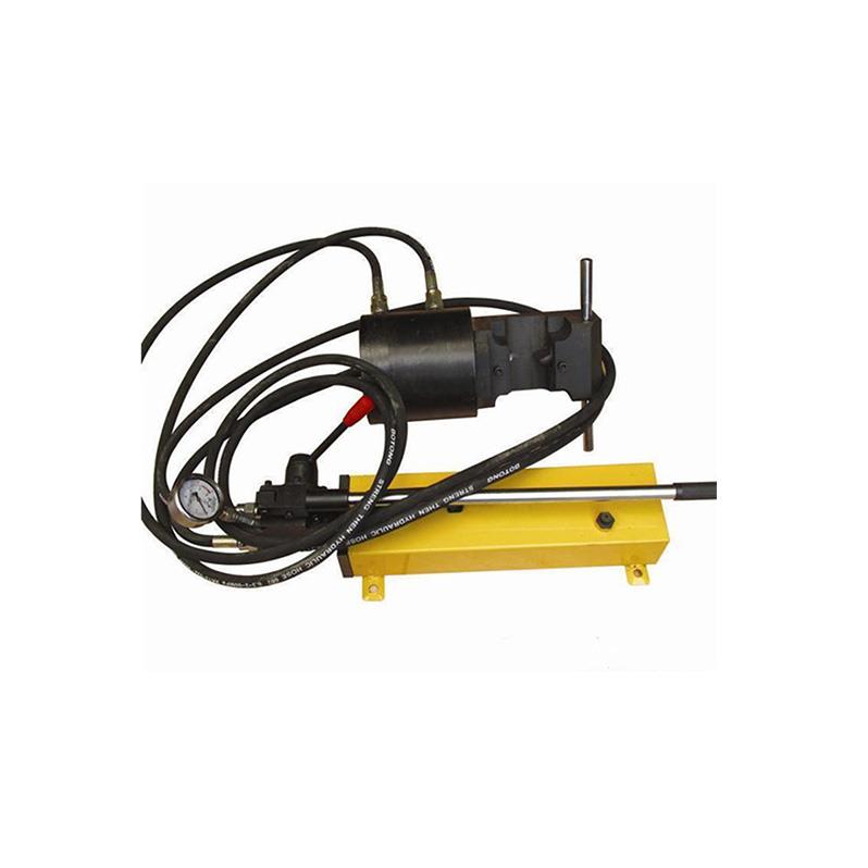 6. 26mm液压剪断器使用时先将手动泵内加满32#抗磨液压油,然后将手动泵快速接头与主机油缸对接,将油泵上的放油螺钉旋紧即可工作.同样,当工作完毕后将放油螺钉放松,工作油缸就会自动回缩.